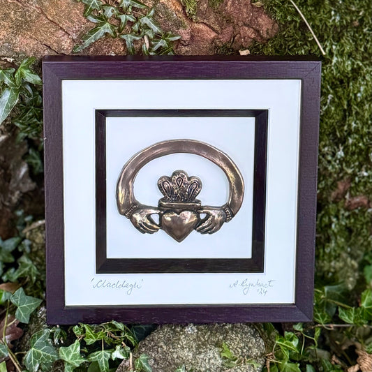 About this Piece This framed bronze Claddagh from Rynhart showcases one of the most beloved...