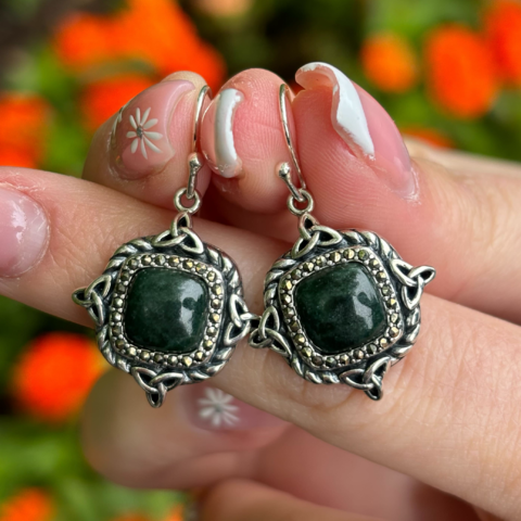 Eternal Elegance Trinity Knot Connemara Marble Drop Earrings Made in Ireland Timeless elegance: Features a...
