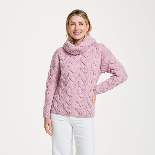 Kinsale Ladies Cable Pink Aran Sweater Balancing comfort and warmth with beauty and style, the...