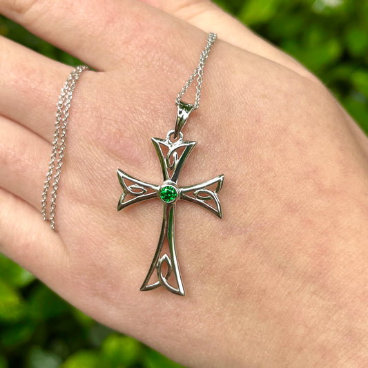Celtic Cross with Emerald in Center This stunning Celtic necklace features an engraved Celtic knot...