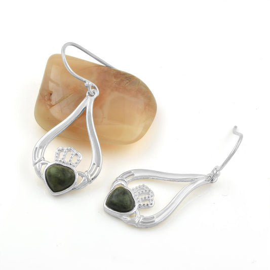 Heart Marble Drop Earrings This pair of heart-shaped sterling silver earrings feature green Connemara marble,...