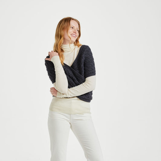 Corrib Crossover Charcoal Aran Wrap Indulge in luxurious comfort and contemporary style with our Corrib...