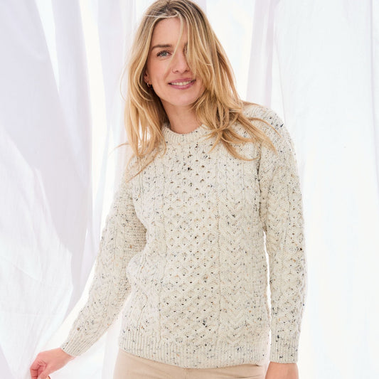 Inisheer Traditional Ladies Aran Flecked Cream Sweater