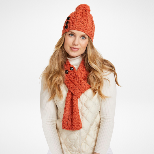 Ballina Aran Buttoned Orange Loop Scarf