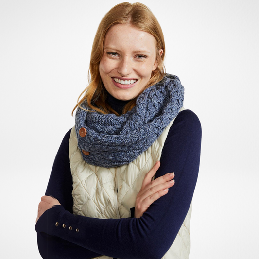 Kilmaine Aran Denim Snood Scarf with Buttons