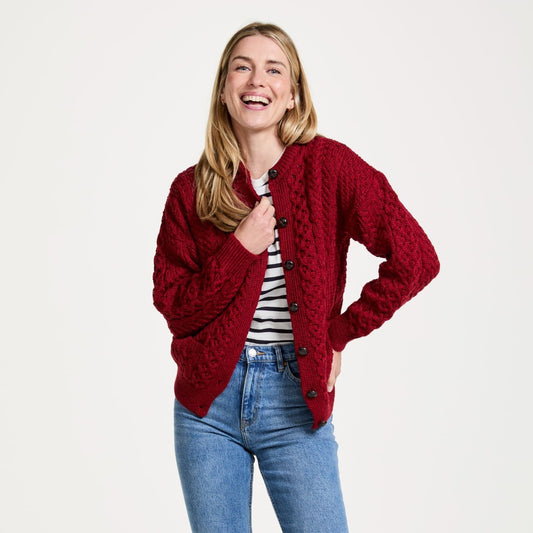 Achill Island Ladies Aran Red Cardigan