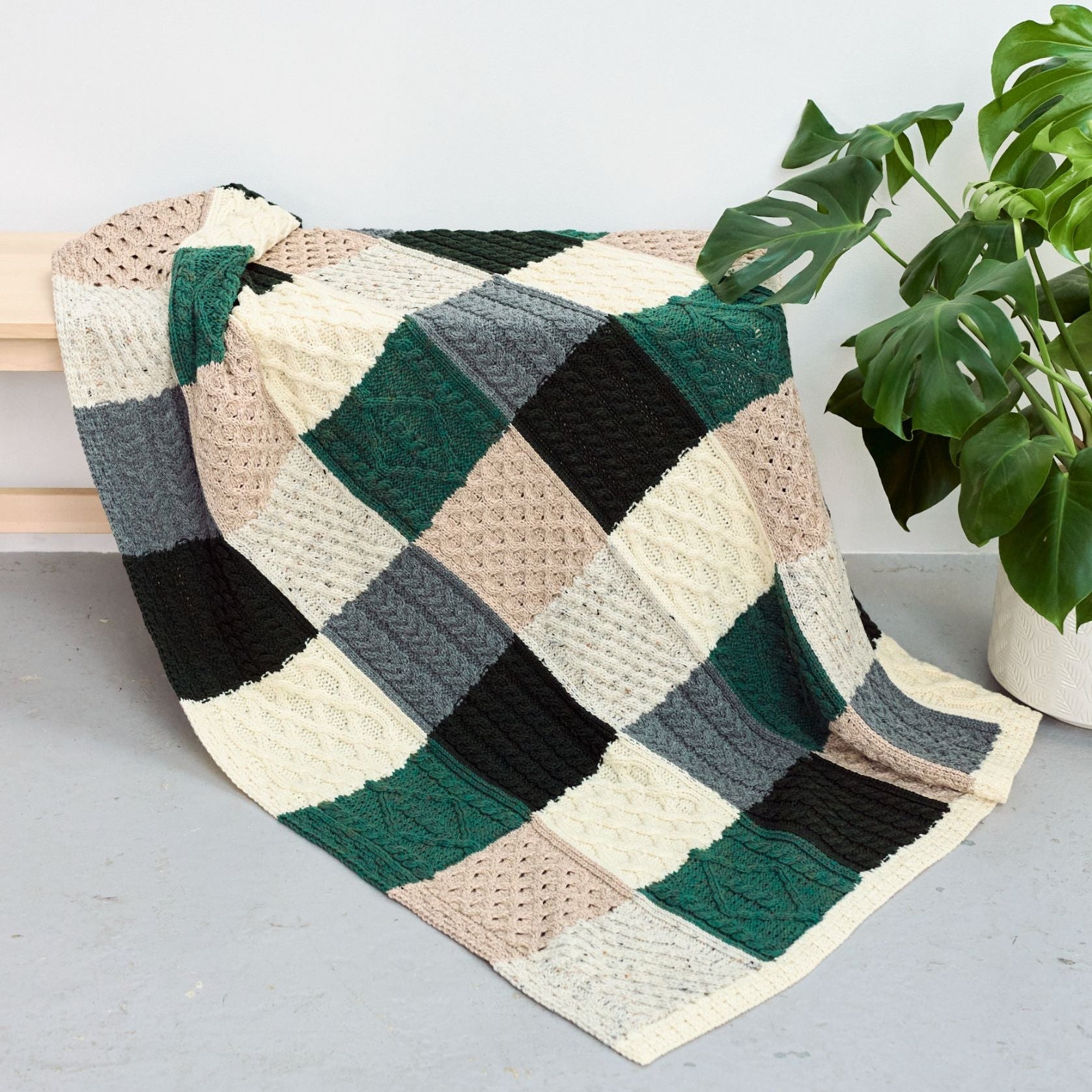 Keel Aran Patchwork Merino Blanket - Bottle Green
