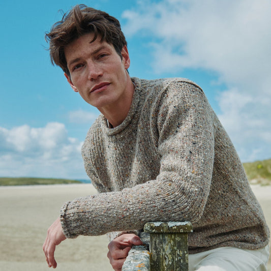Raheen Tweed Oat Roll Neck Mens Sweater