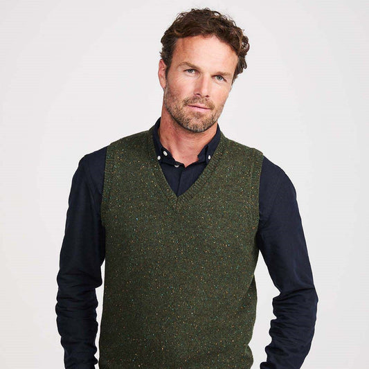 Roonagh Men's Aran Nepped Green V-Neck Vest Experience the perfect blend of tradition and modern...