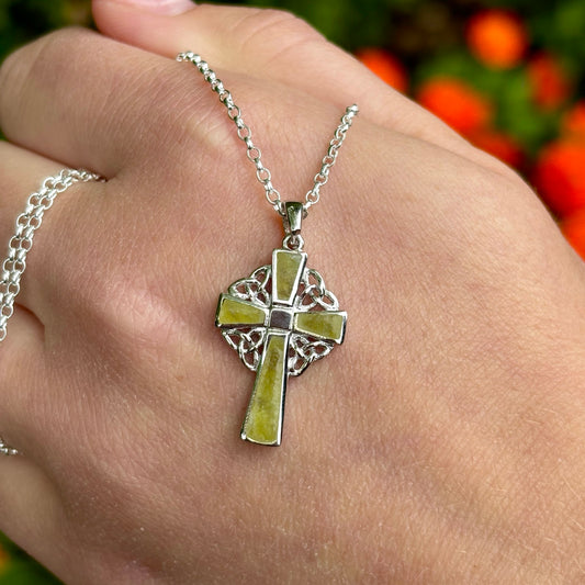 Sterling Silver Celtic Cross Necklace with Connemara Marble
