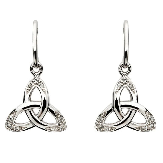 Sterling Silver Celtic Stone Set Trinity Drop Earrings
