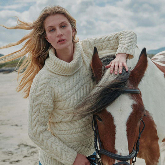Listowel Ladies Aran Cabled Sweater Experience the perfect blend of tradition and modern style with...