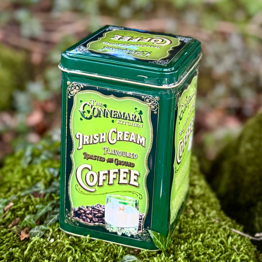 NOSTALGIC TIN OF IRISH CREAM FLAVOUR GROUND COFFEE.The Connemara Kitchen brings you this roasted ground...