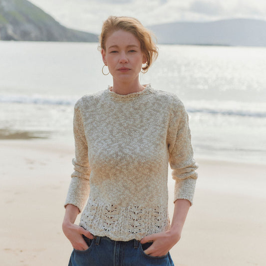 Éireann Ladies Traditional Aran Supersoft Oat Sweater