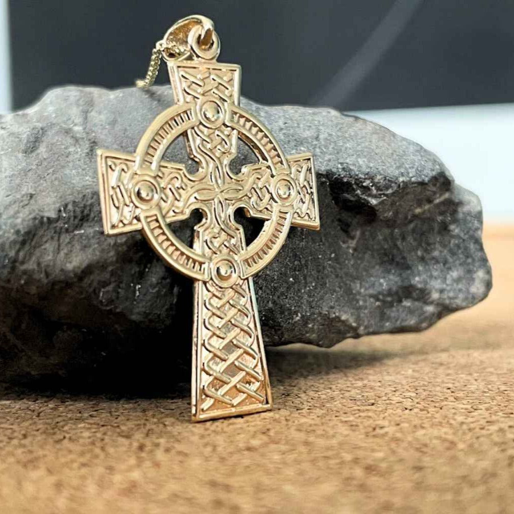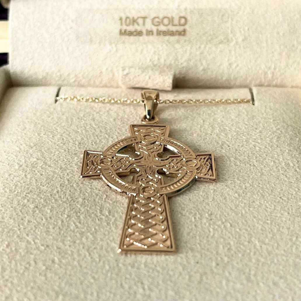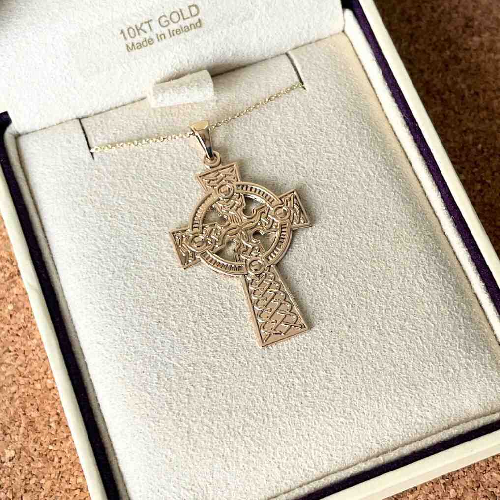 Explore our exquisite collection of Traditional Celtic Crosses, available in both 10K yellow gold and sterling silver. Each cross features intricate knot patterns and the classic sun circle design, symbolizing eternity and unity. Every pendant comes with an 18-inch chain in matching yellow gold or silver. Our Celtic cross pendants are crafted with the utmost care and are hallmarked at the prestigious Irish Assay Office in Dublin Castle. Embrace the rich heritage of Irish craftsmanship with these guaranteed Irish jewelry pieces, and enjoy free shipping from Ireland to your doorstep.