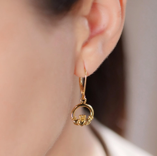 14KT Gold Vermeil Drop Claddagh Earrings