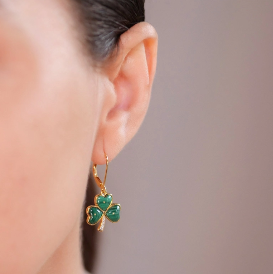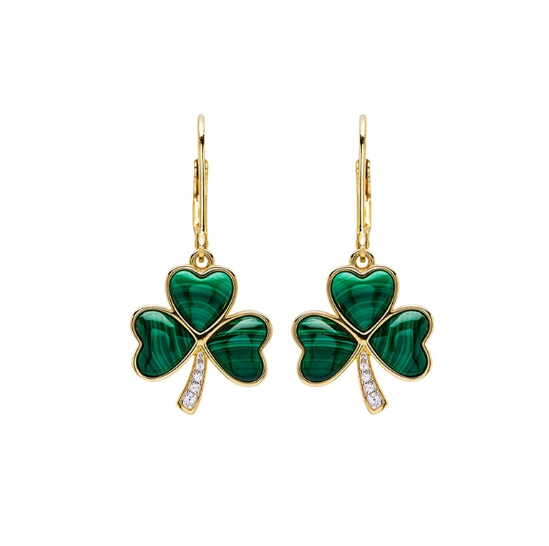 14KT Gold Vermeil Drop Malachite Shamrock Earrings
