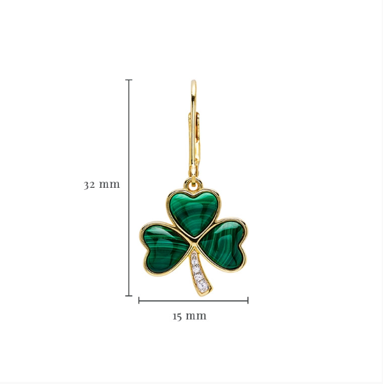 These Shanore 14KT Gold Vermeil Drop Malachite Shamrock Earrings combine two elements to bring life to Celtic tradition. The shamrock is an ancient Celtic symbol that is often associated with St.Patrick. It is a healing plant and it brings the wearer luck and protection. However, when St.Patrick arrived in Ireland he used the Shamrock to explain the history of the Holy Trinity. In addition, the malachite stone inspires positive change. These earrings would be a beautiful gift for someone who takes pride in their Irish heritage.