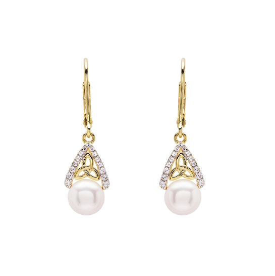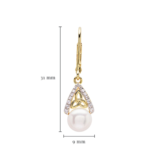 14KT Gold Vermeil Drop Pearl Celtic Trinity Knot Earrings