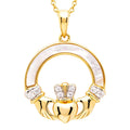 14kt Gold Vermeil Mother of Pearl Claddagh Necklace with White Cubic Zirconia