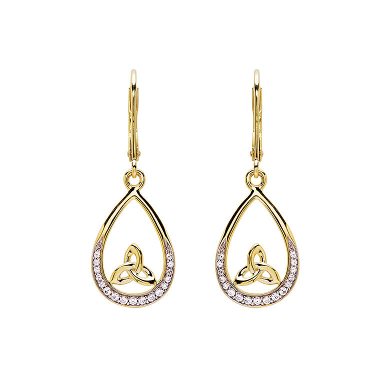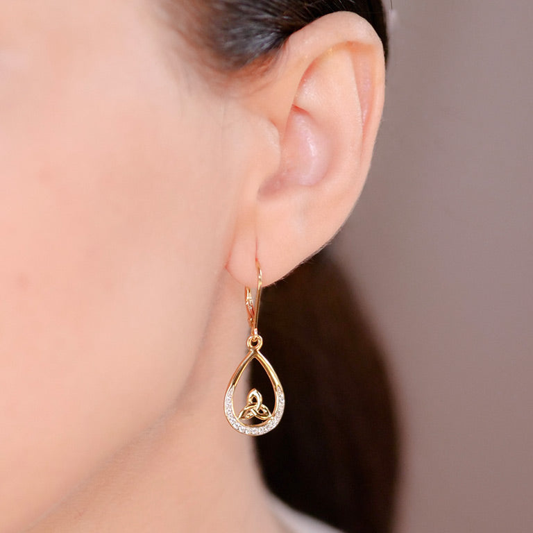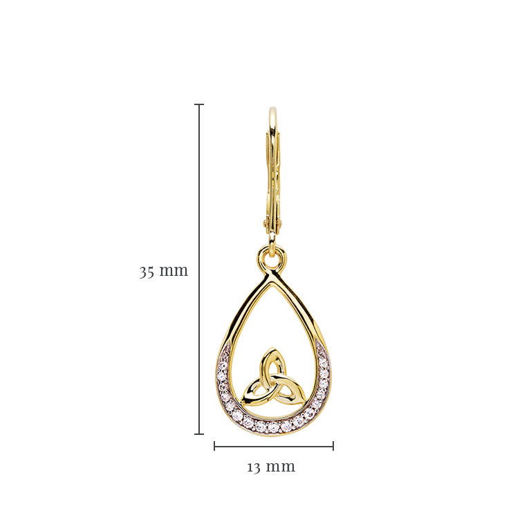 14KT Gold Vermeil Tear Drop Trinity Knot Earrings Studded with White Cubic Zirconias