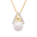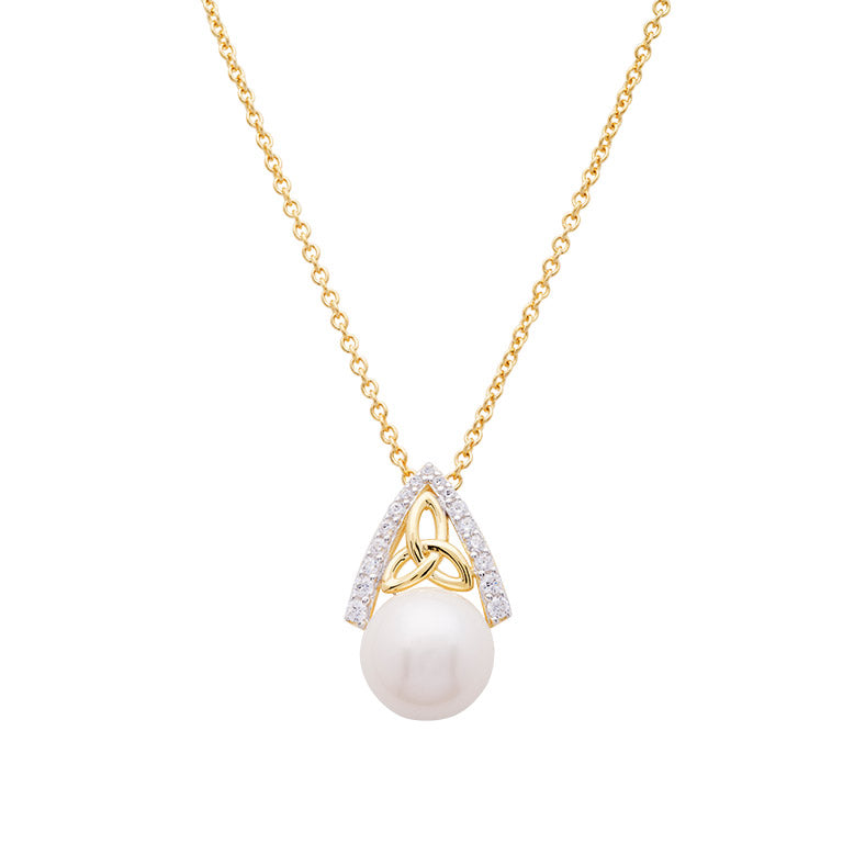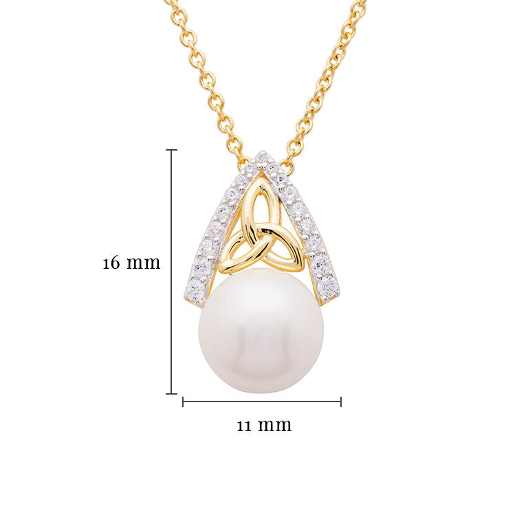 14KT Gold Vermeil Trinity Knot Pearl Pendant Studded with White Cubic Zirconias