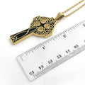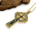 18k Gold Coated Heavy Celtic Cross Necklace Black Grooving