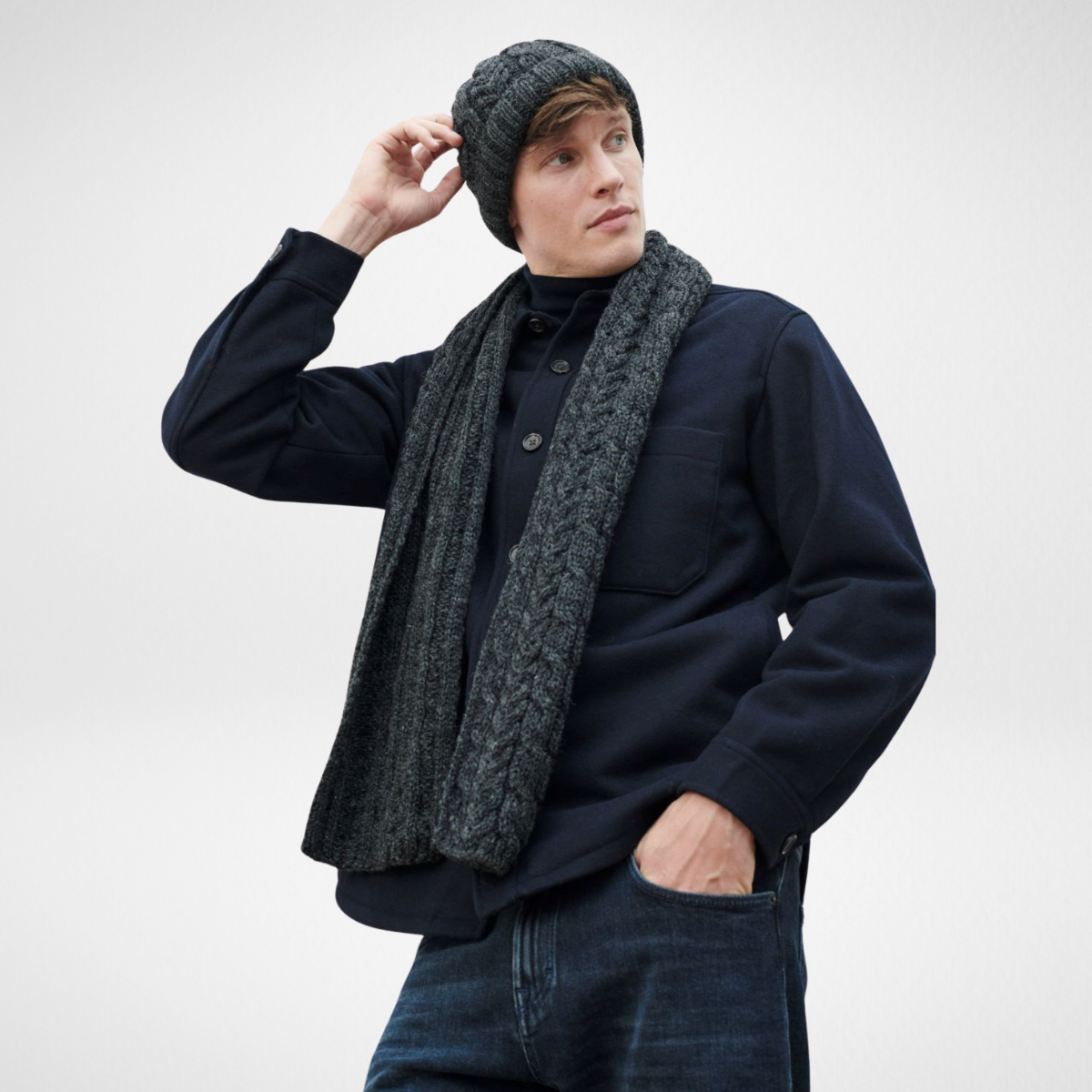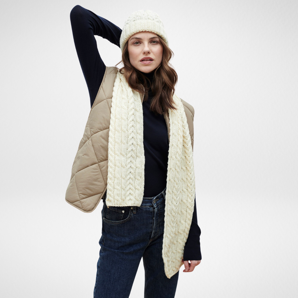 Elevate your accessory collection with the Aran Cable Scarf, a perfect blend of traditional craftsmanship and contemporary style. This exquisite scarf, crafted from Heritage Worsted Wool, offers unparalleled warmth and softness, making it an essential addition to your winter wardrobe. The elegant color and intricate Aran stitching add a touch of timeless Irish heritage to any outfit.