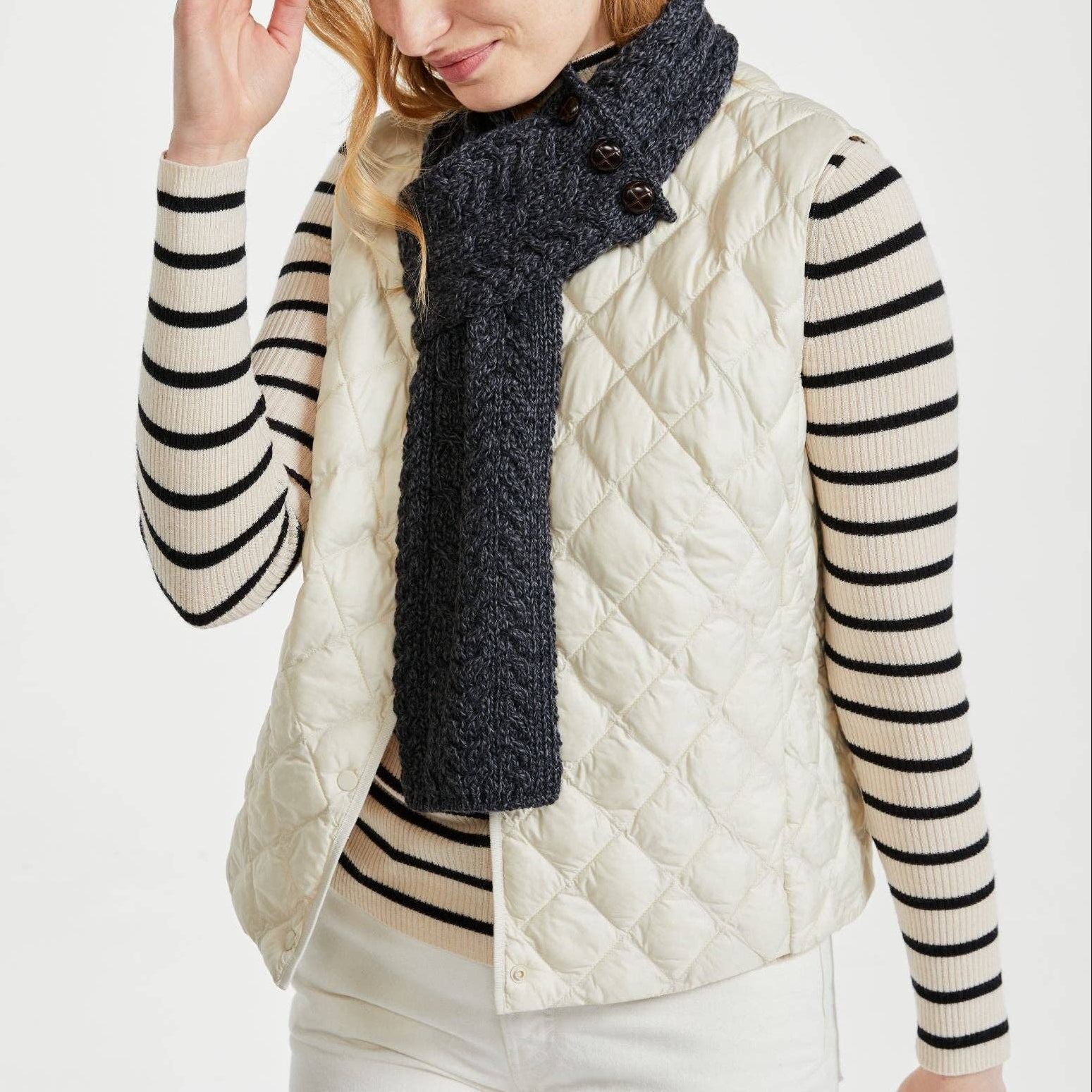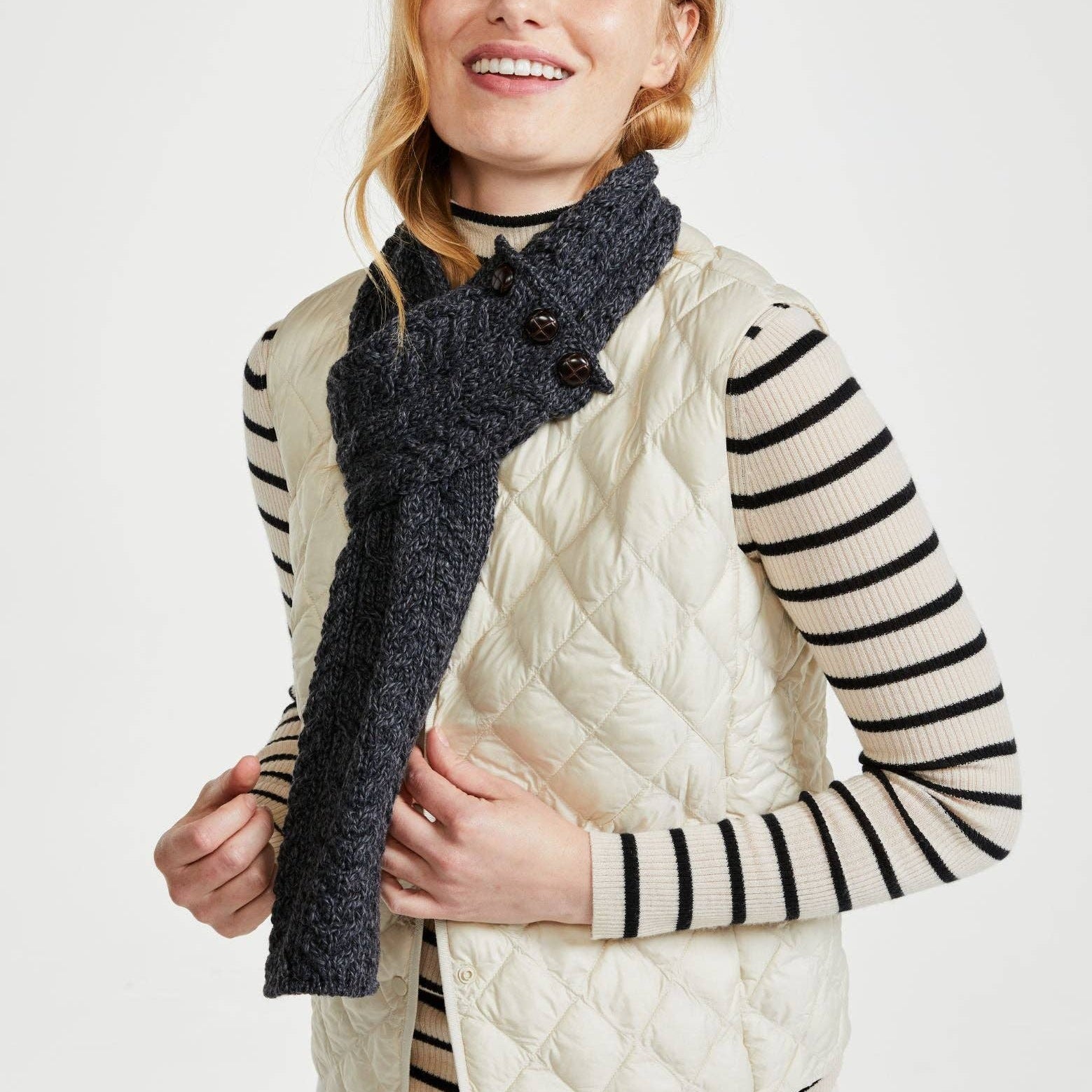 Ballina Aran Buttoned Charcoal Loop Scarf