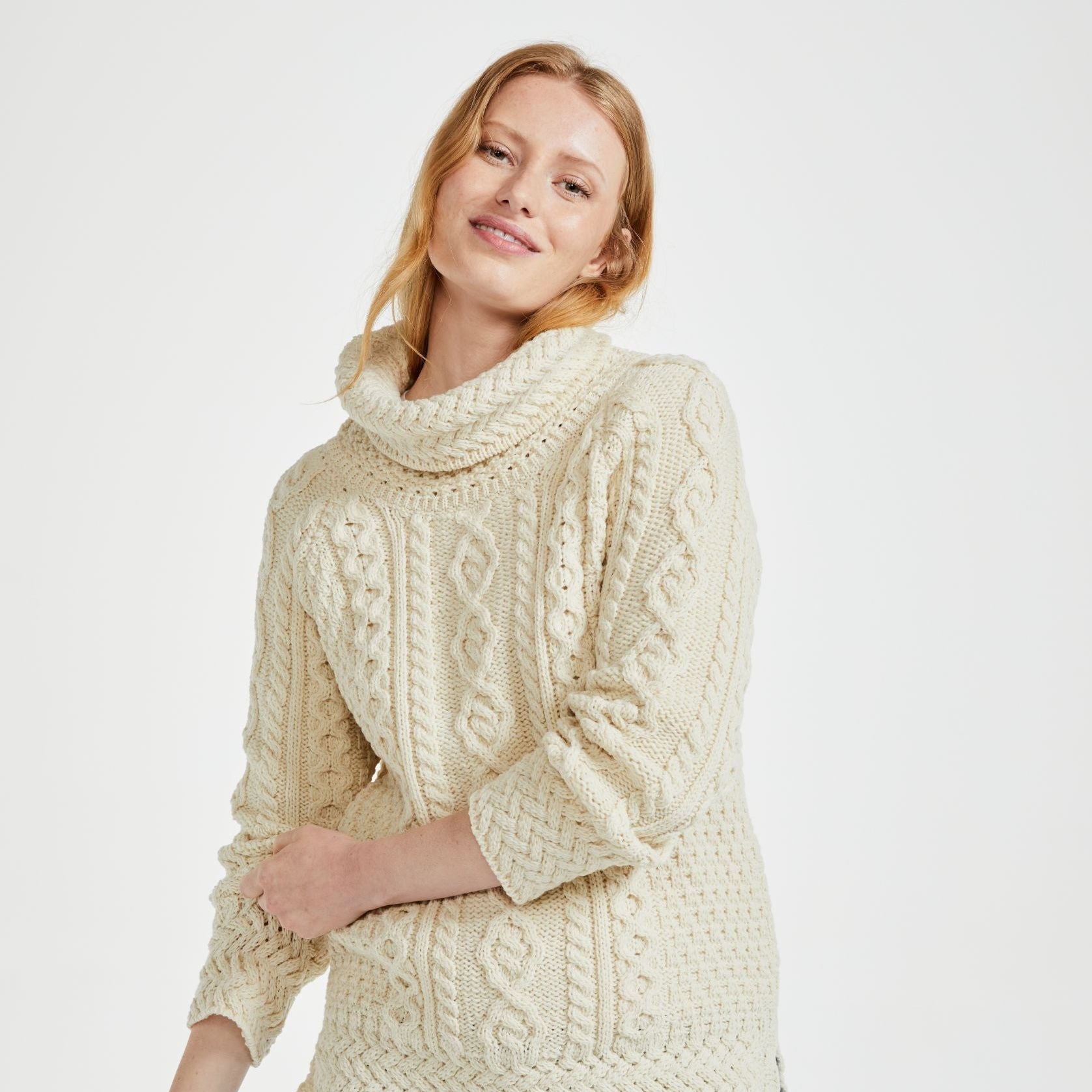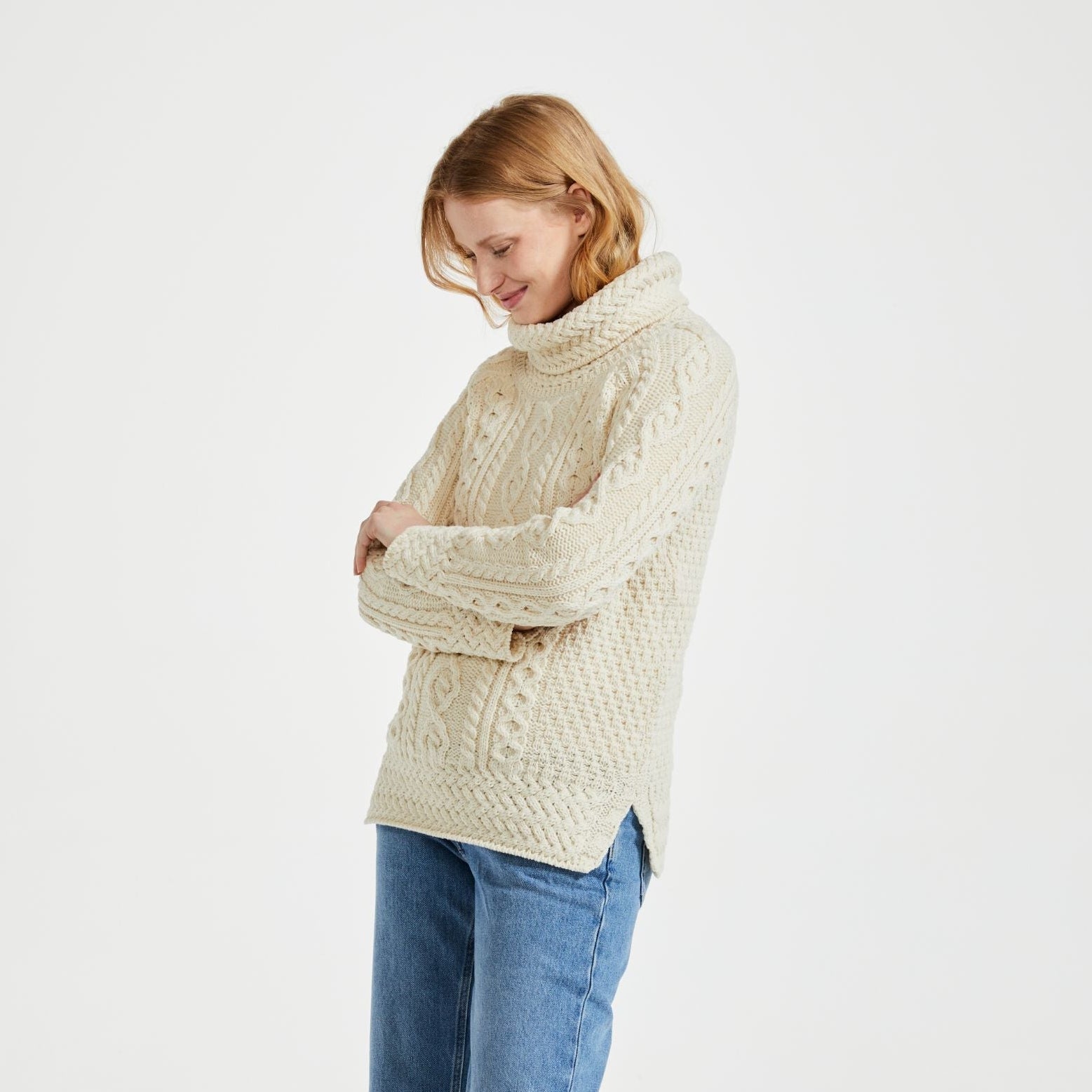 Belcare Ladies Aran Natural Roll Neck Sweater