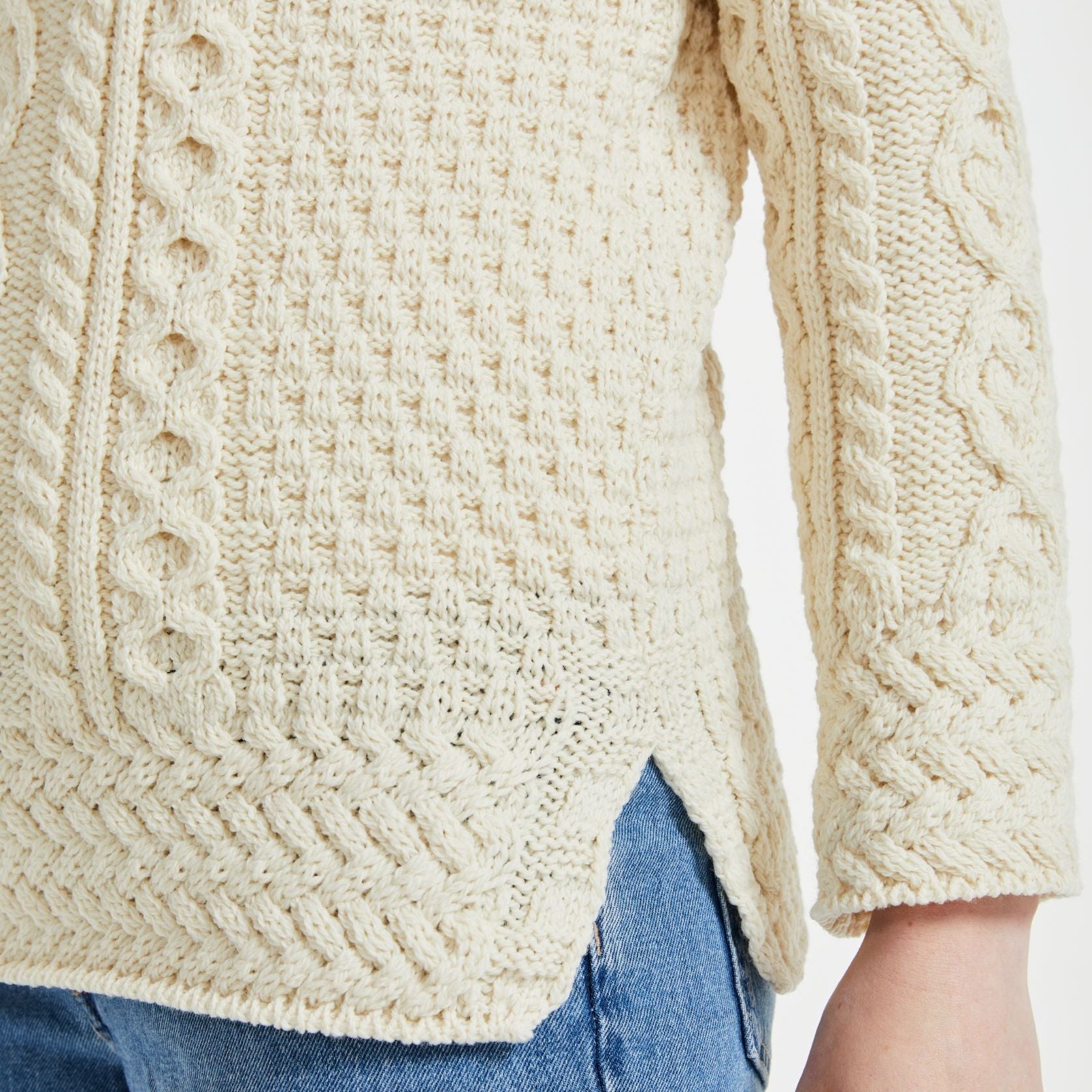 - Classic Aran Stitching: The intricate Aran stitching adds depth and texture to the design, showcasing traditional Irish craftsmanship at its finest.