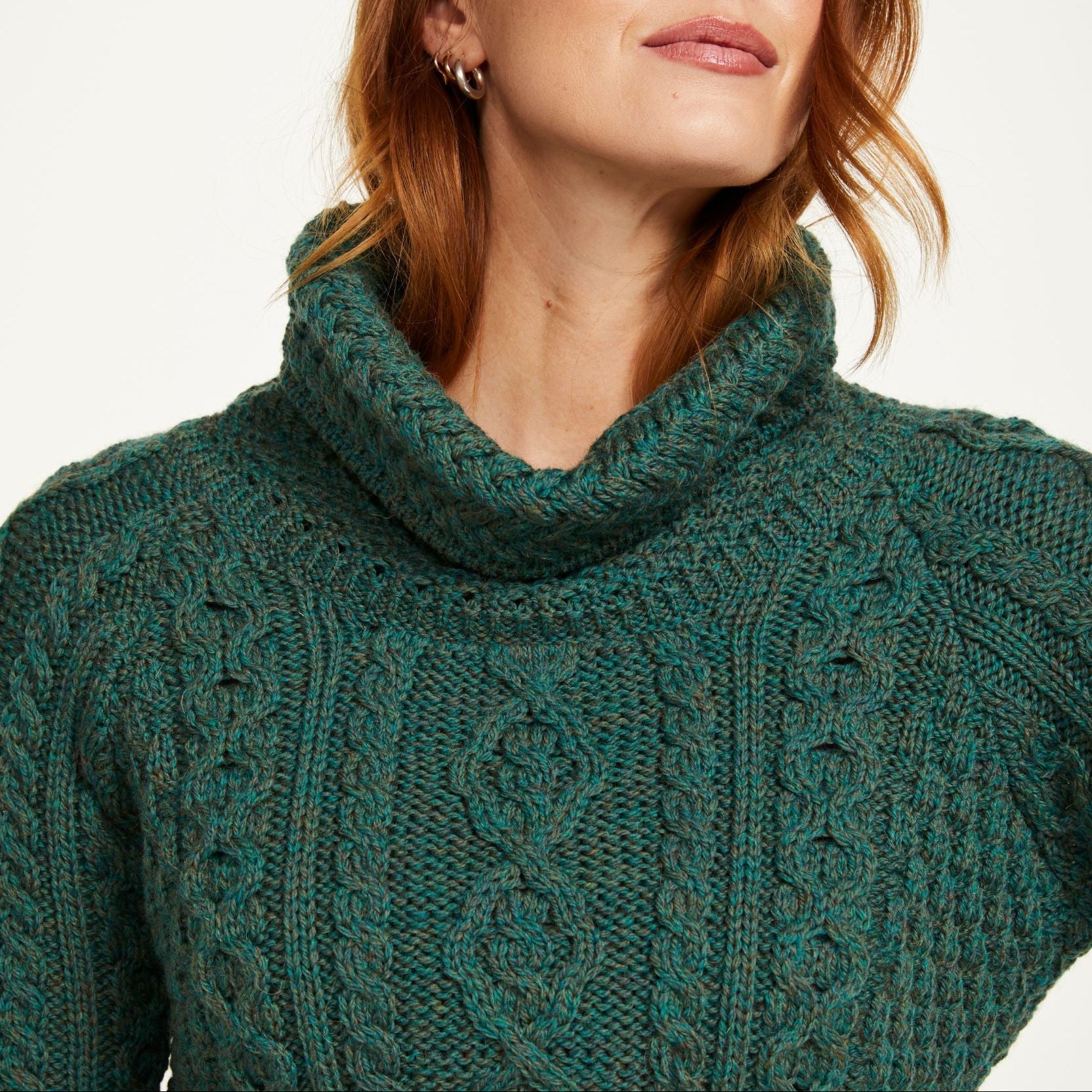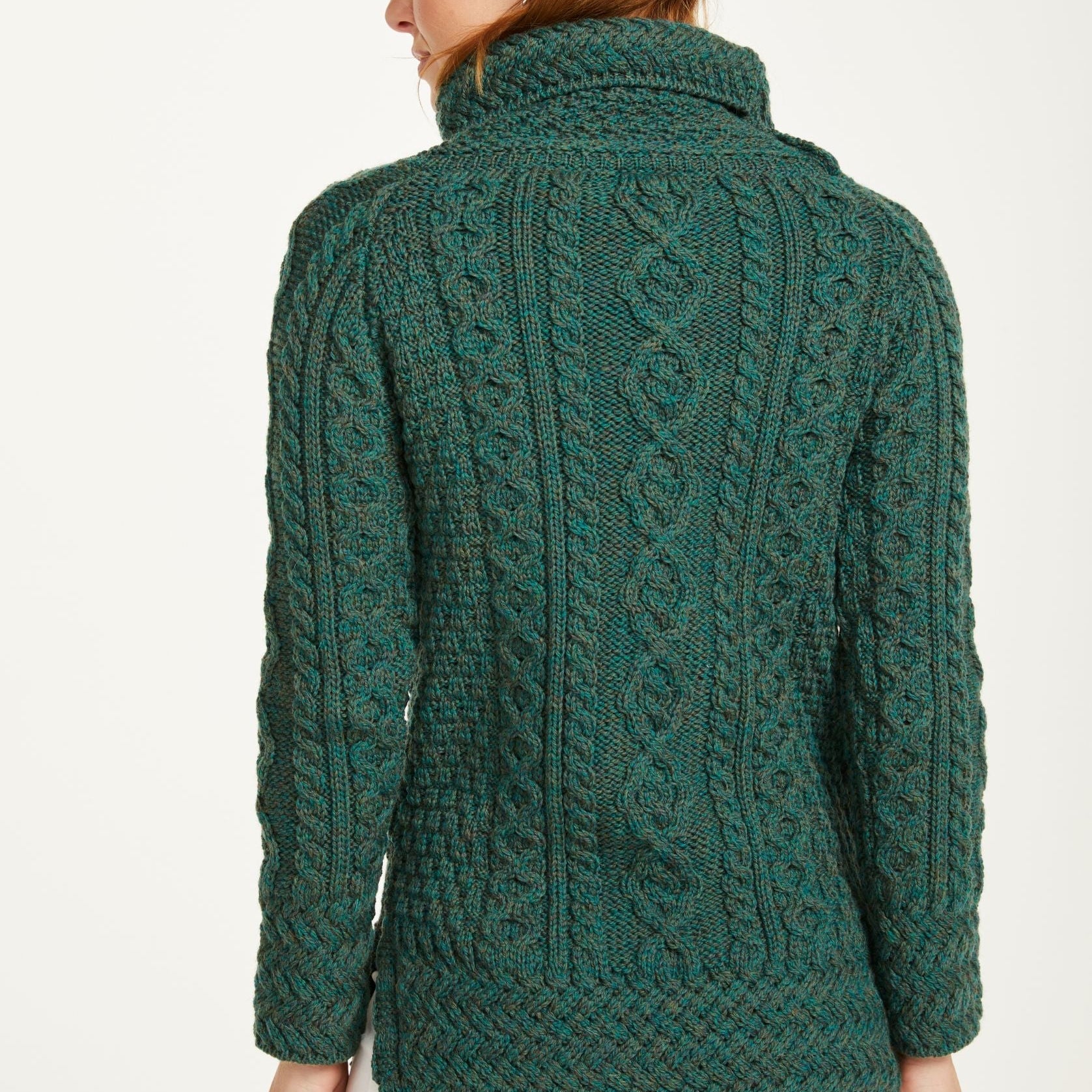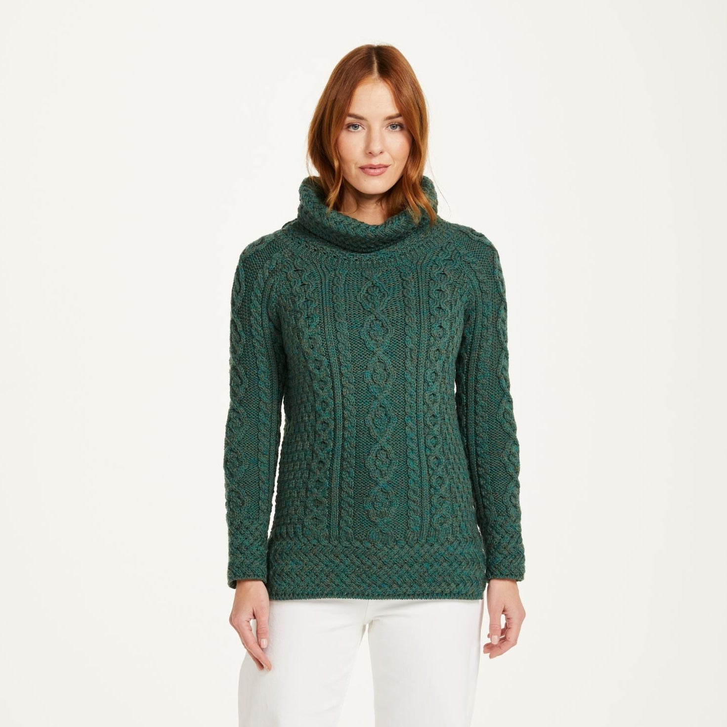 Introducing the Belcare Ladies Aran Roll Neck Sweater, a timeless addition to your winter wardrobe. Crafted with precision and care by Aran Woollen Mills, this sweater embodies comfort, style, and quality craftsmanship. Whether you're exploring the outdoors or enjoying a cozy night in, the Belcare sweater promises to keep you warm and chic.