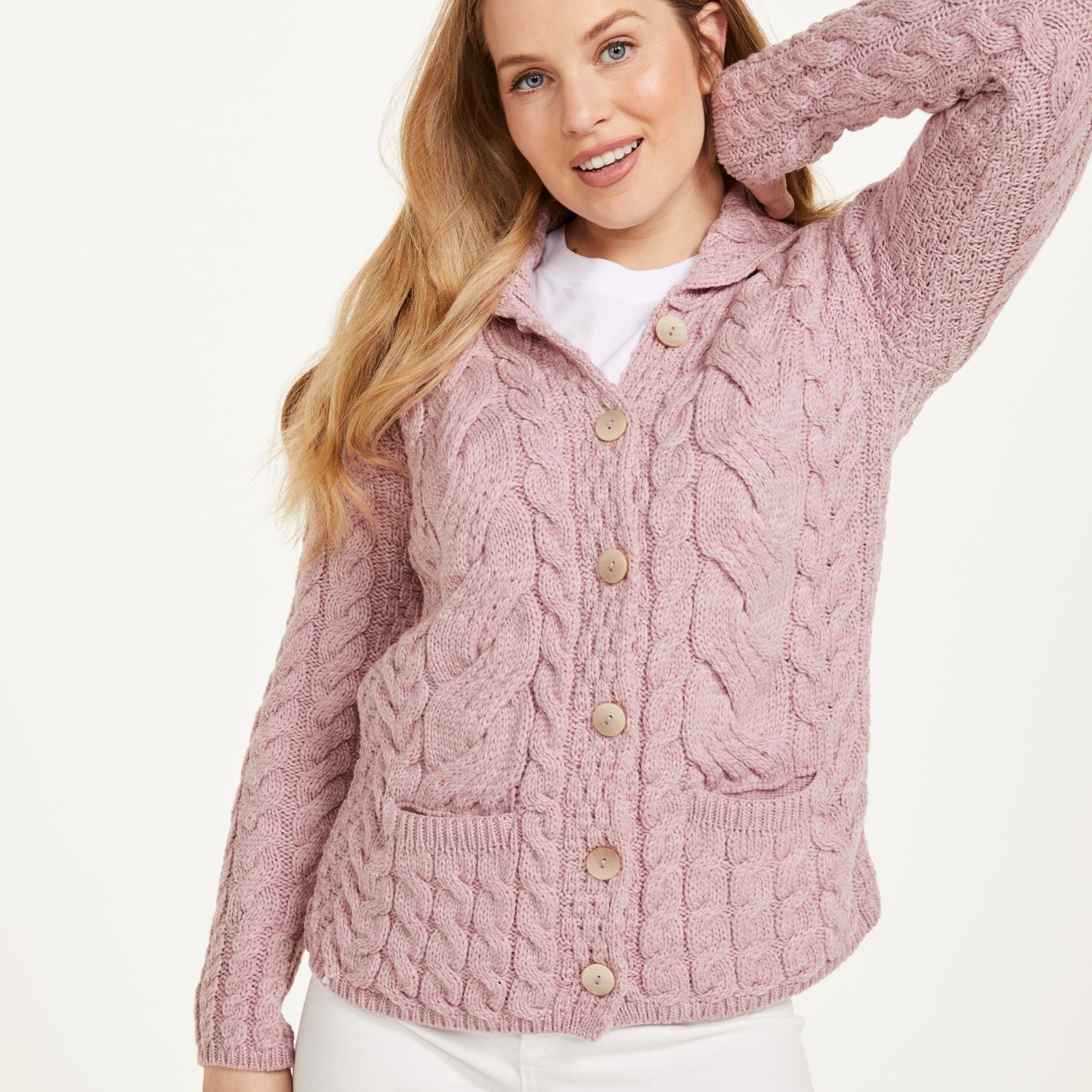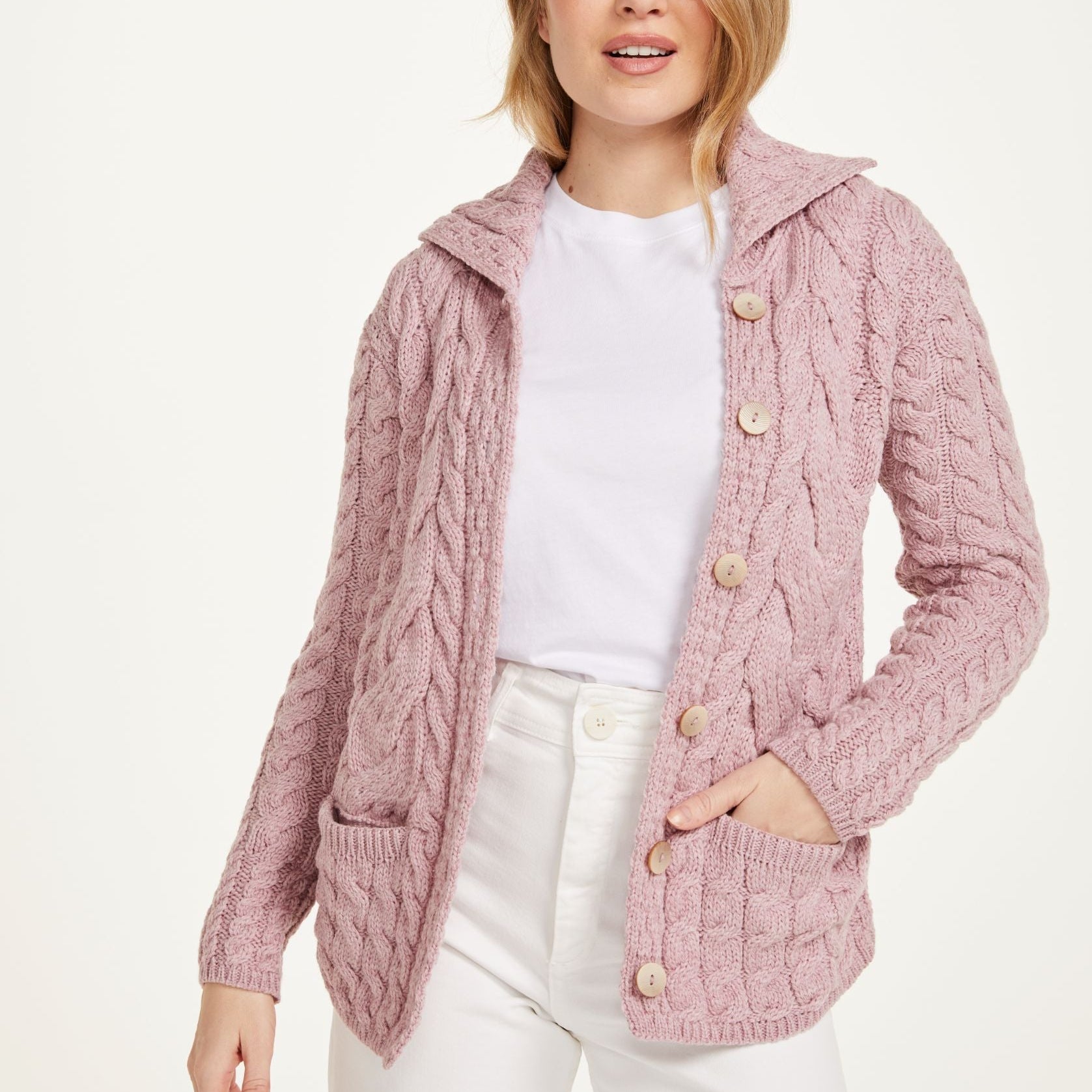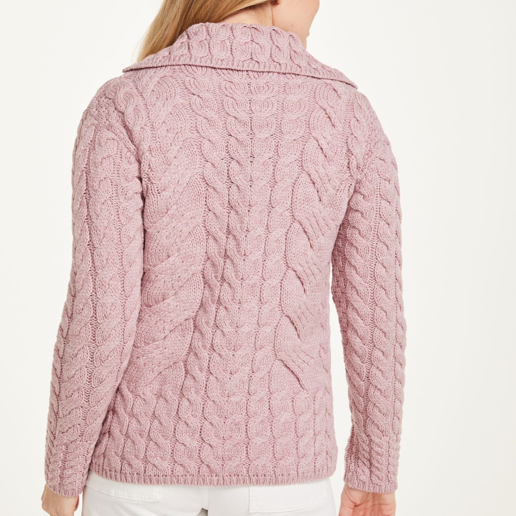 Belcarra Ladies Pink Aran Cardigan