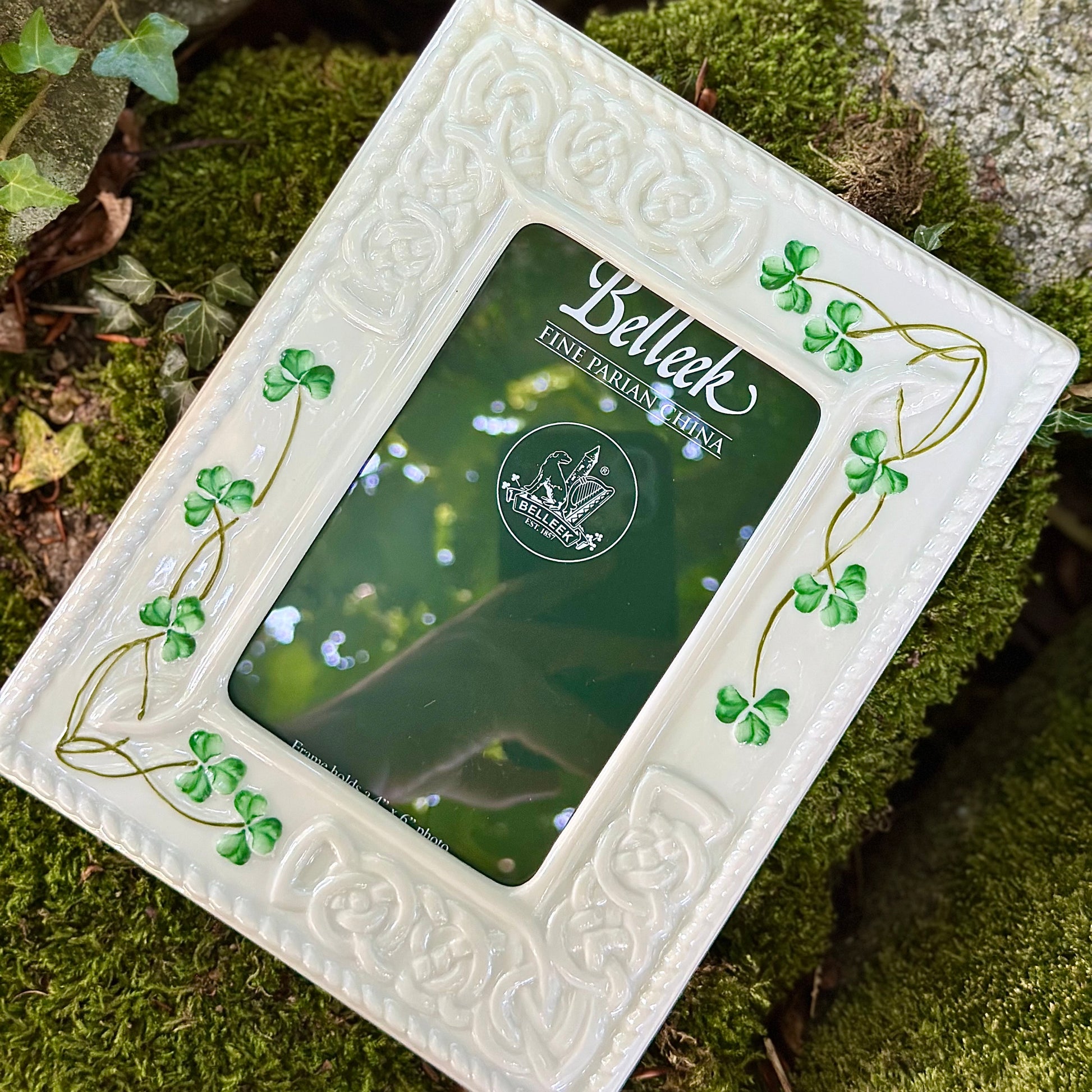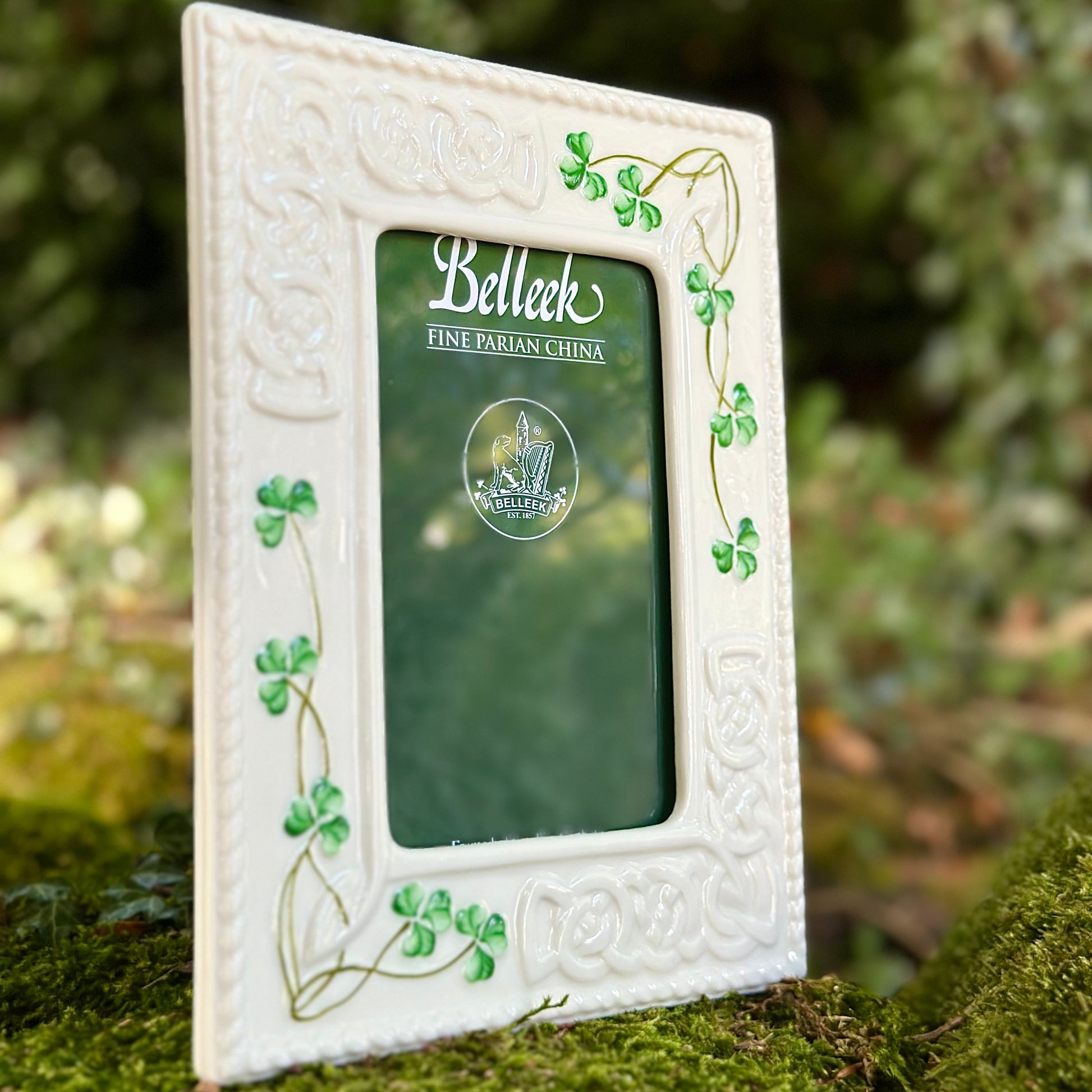 This beautifully designed Belleek photo frame is the perfect Irish gift for any occasion. Frame your memories inside the handcrafted porcelain of the Shamrock Frame. A gift from Ireland, made in Ireland.