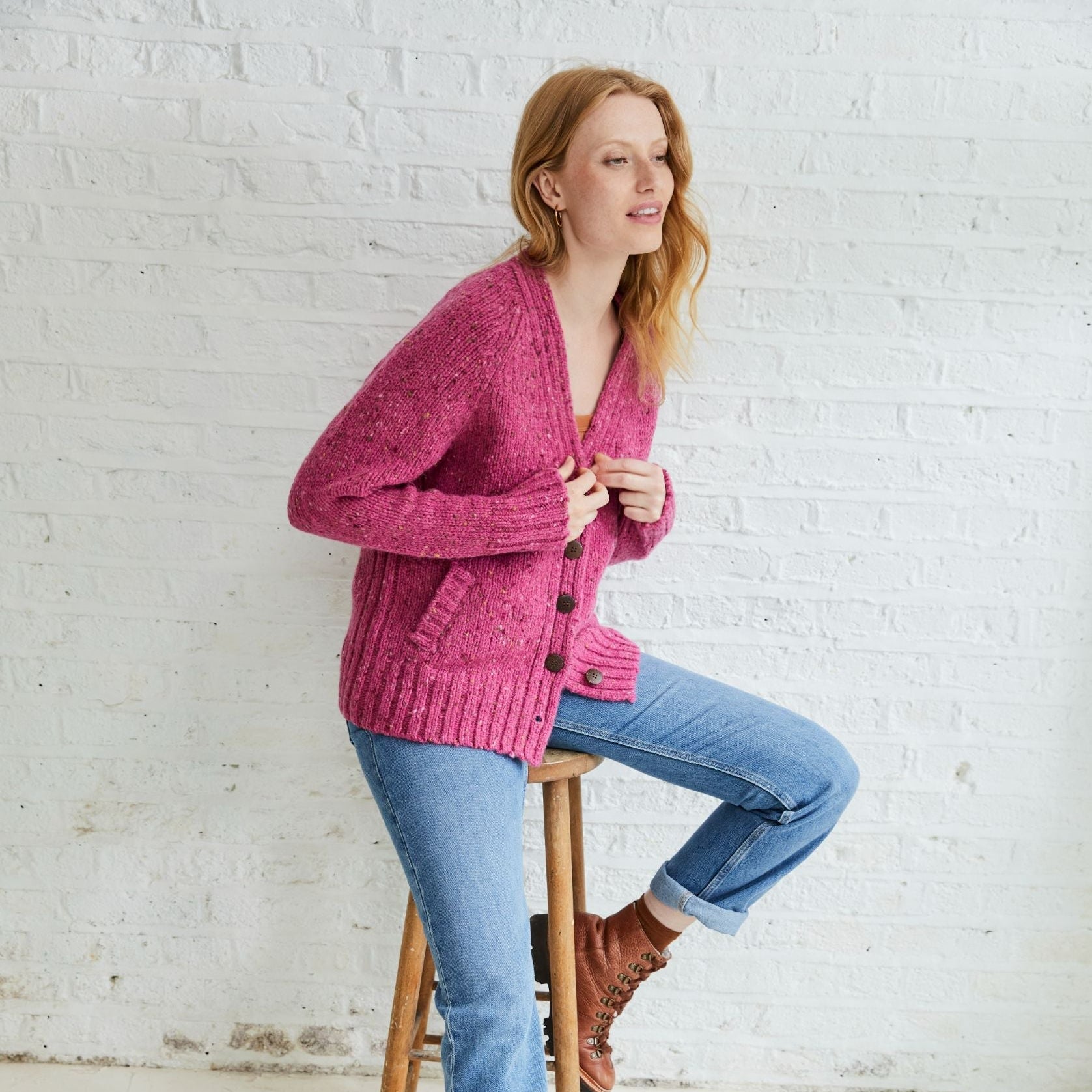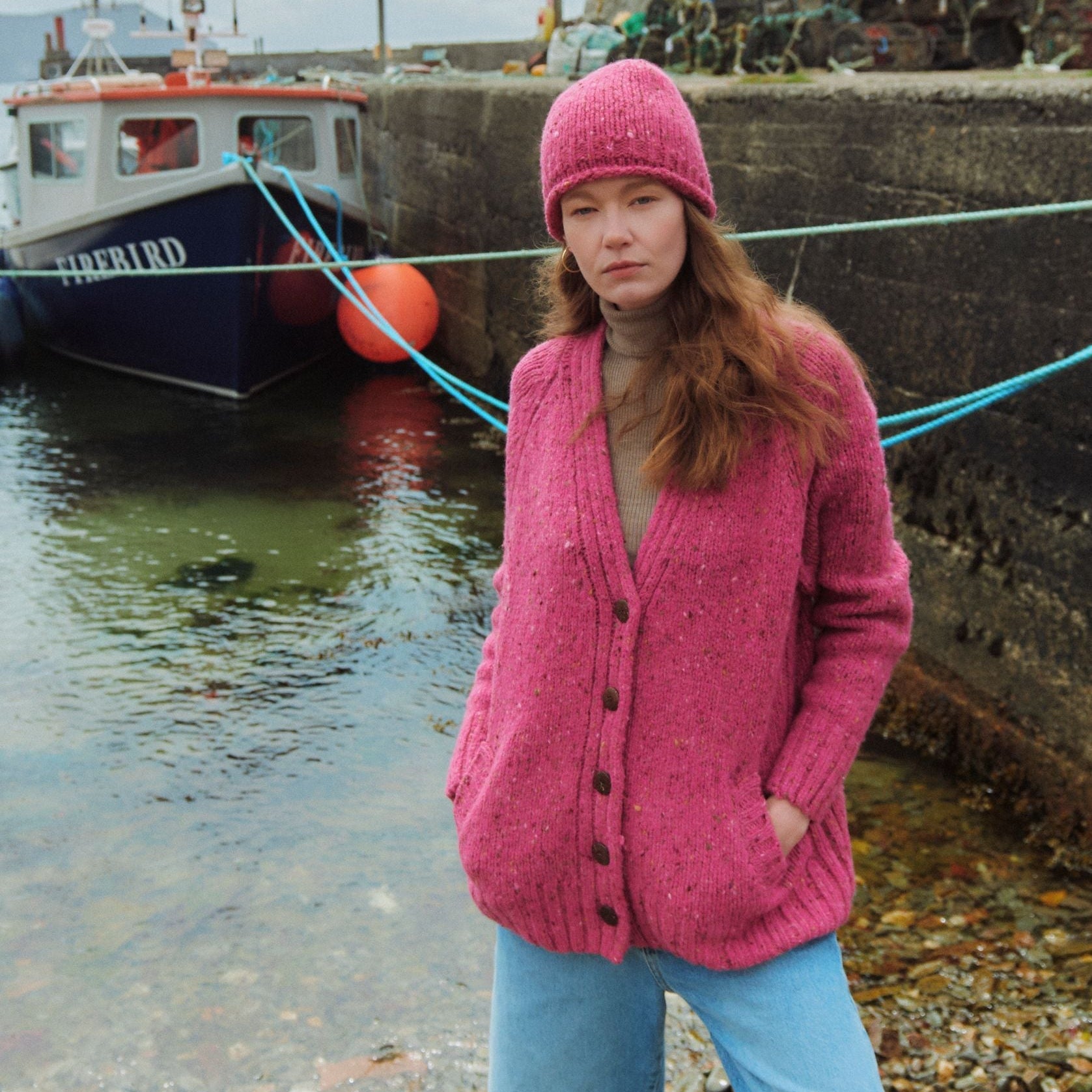 The Bonny Glen cardigan features a full button-down front, allowing you to wear it open or closed, providing versatile styling options. The soft, warm tweed fabric ensures you stay cozy in cooler weather, while the vibrant pink hue adds a pop of color to brighten up your day. Whether you’re strolling through the countryside or meeting friends in the city, this cardigan is your go-to choice for chic comfort and enduring quality.