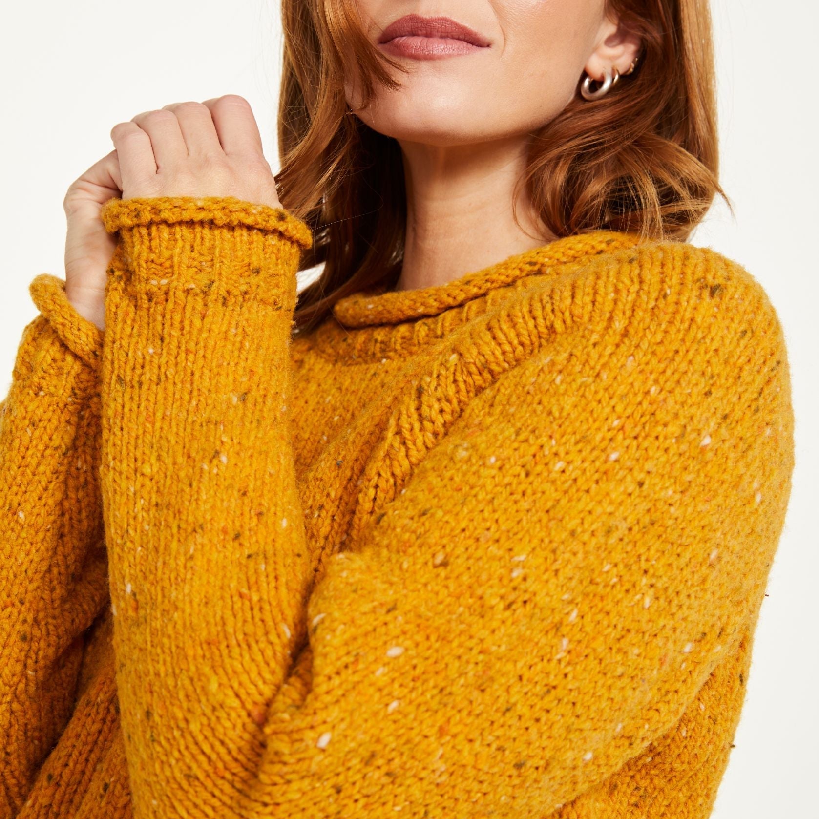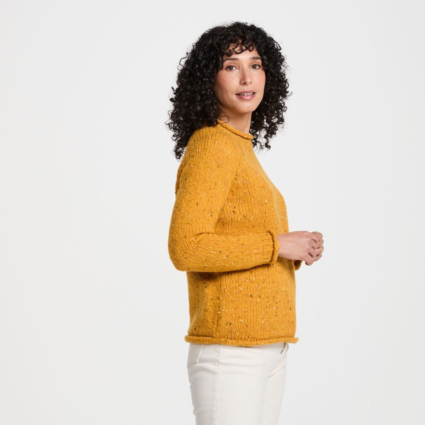 Brackloon Tweed Roll Neck Yellow Ladies Sweater