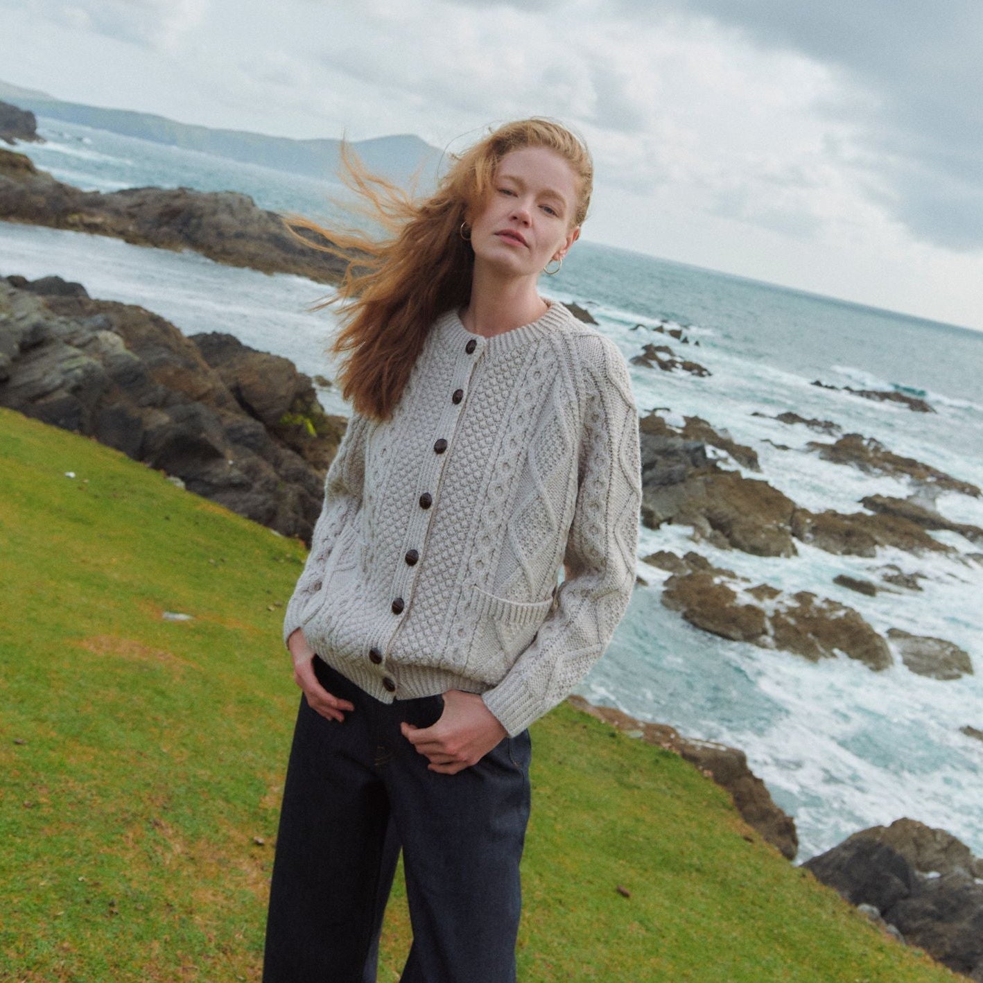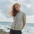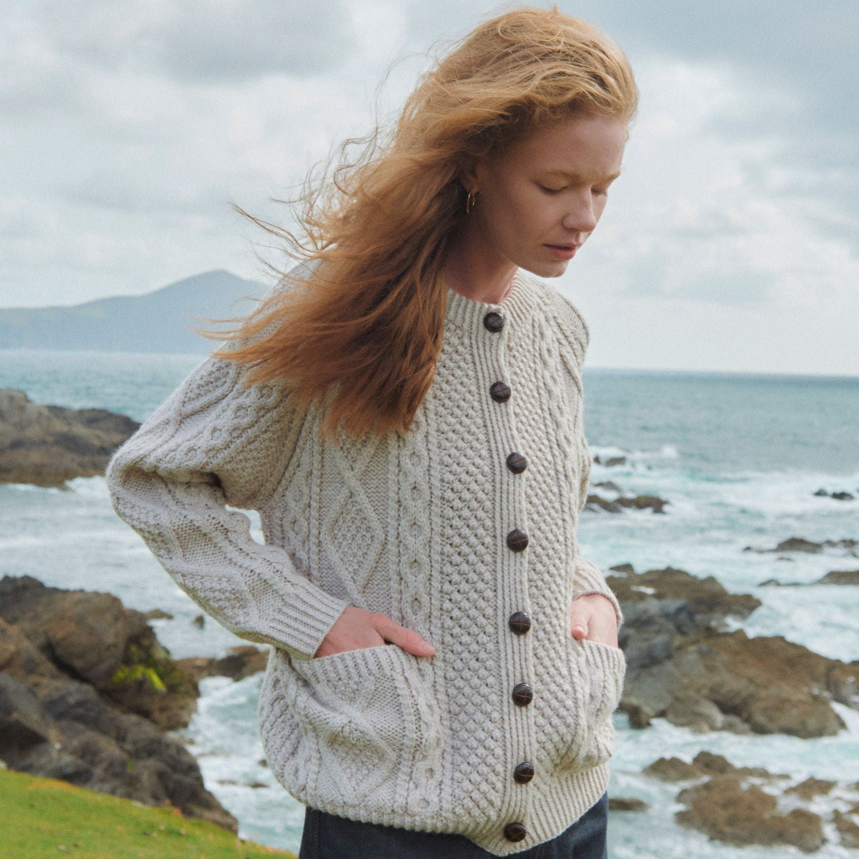 Whether you're strolling through the countryside or navigating the city streets, the Breaffy Ladies Aran Cardigan offers the perfect blend of comfort, style, and heritage. Add this exquisite piece to your collection and experience the enduring charm of authentic Irish knitwear.