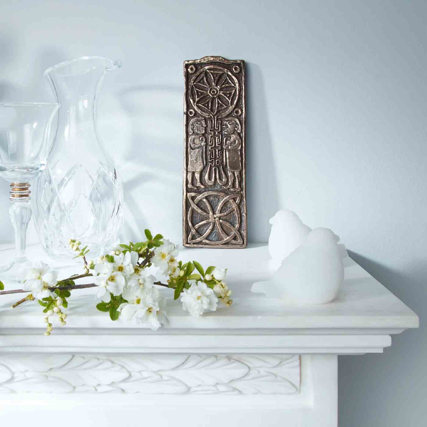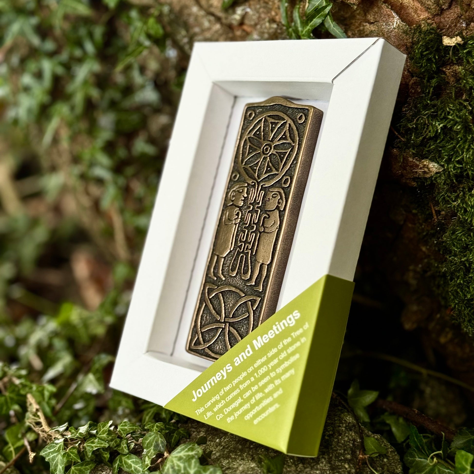 This bronze wall hanging is hand carved with symbols that represent the journey of life, from first meetings, opportunities, and encounters. The wall hanging depicts a couple on either side of the Tree of Life which is also seen from a 1000-year-old stone in Co.Donegal