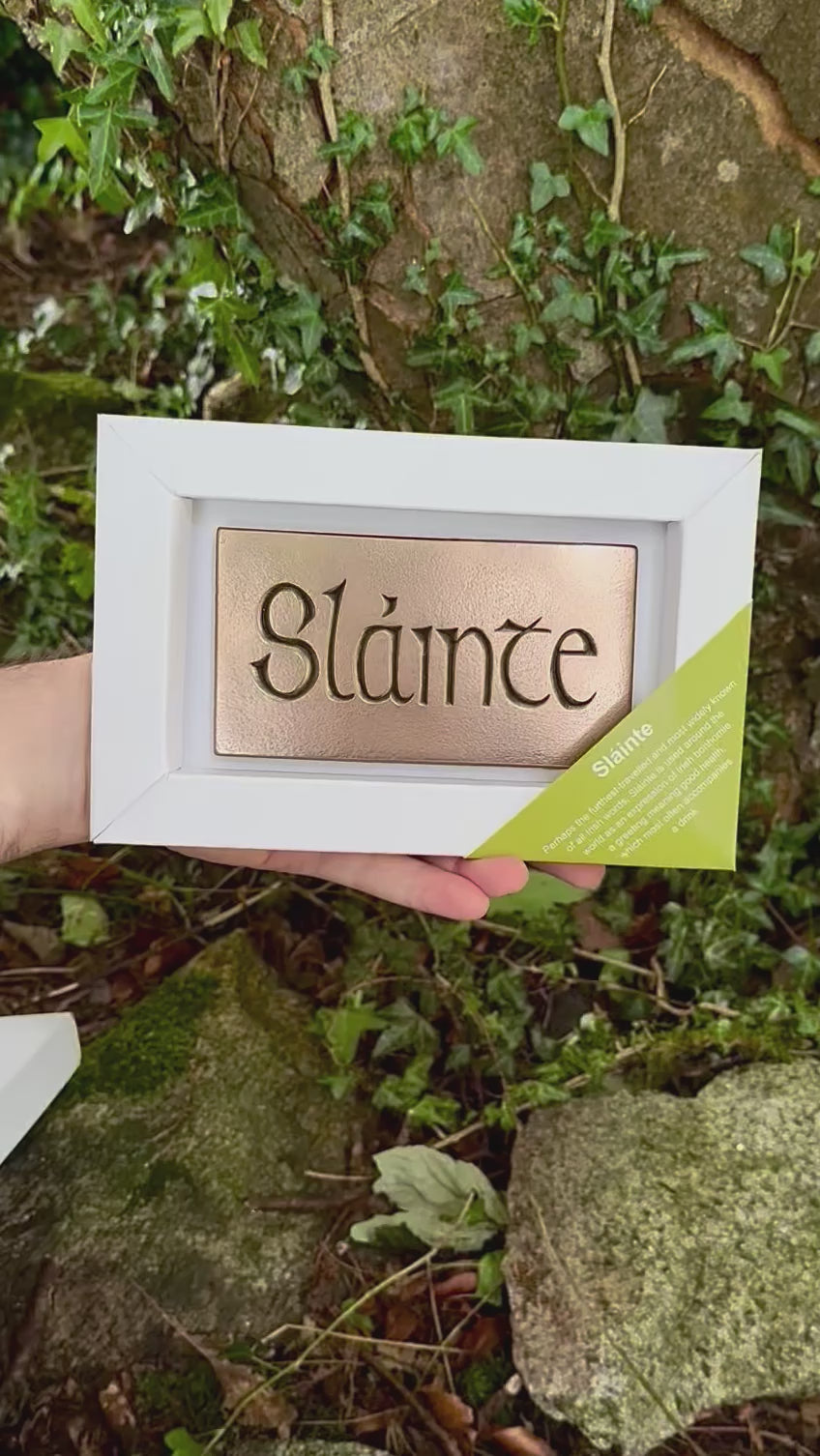 Sláinte is one of Ireland’s most recognised words, spoken in pubs and homes across the globe. Meaning “health,” it is the traditional Irish toast — simple, strong and full of goodwill. As the Gaelic language continues its revival, this award-winning design by Adam Grabski celebrates both the word itself and the cultural pride behind it. Cast in bronze with a carefully polished finish, the plaque carries warmth and presence, making it a fitting tribute to Irish hospitality and shared moments.