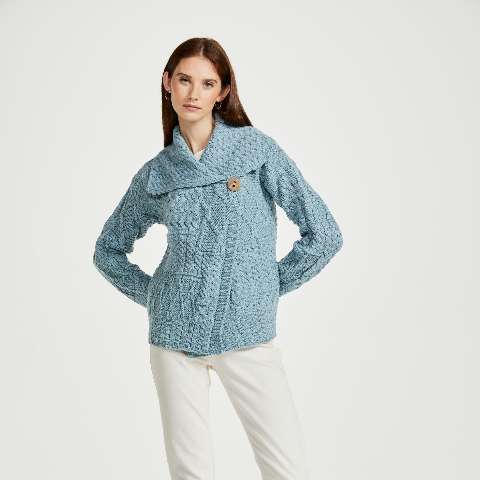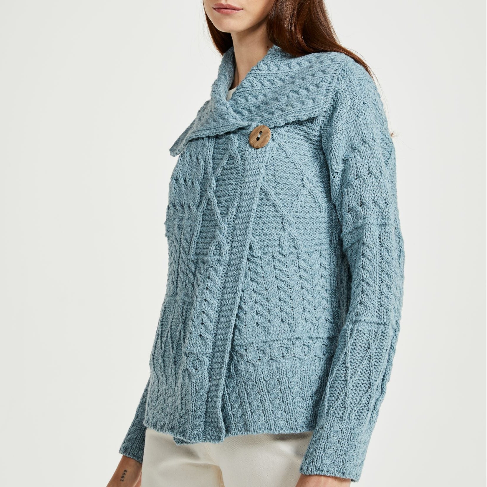Wrap yourself in elegance with the Ceide Ladies Aran Cardigan. Crafted with meticulous attention to detail, this cardigan combines classic Aran stitching with contemporary style for a truly timeless piece.