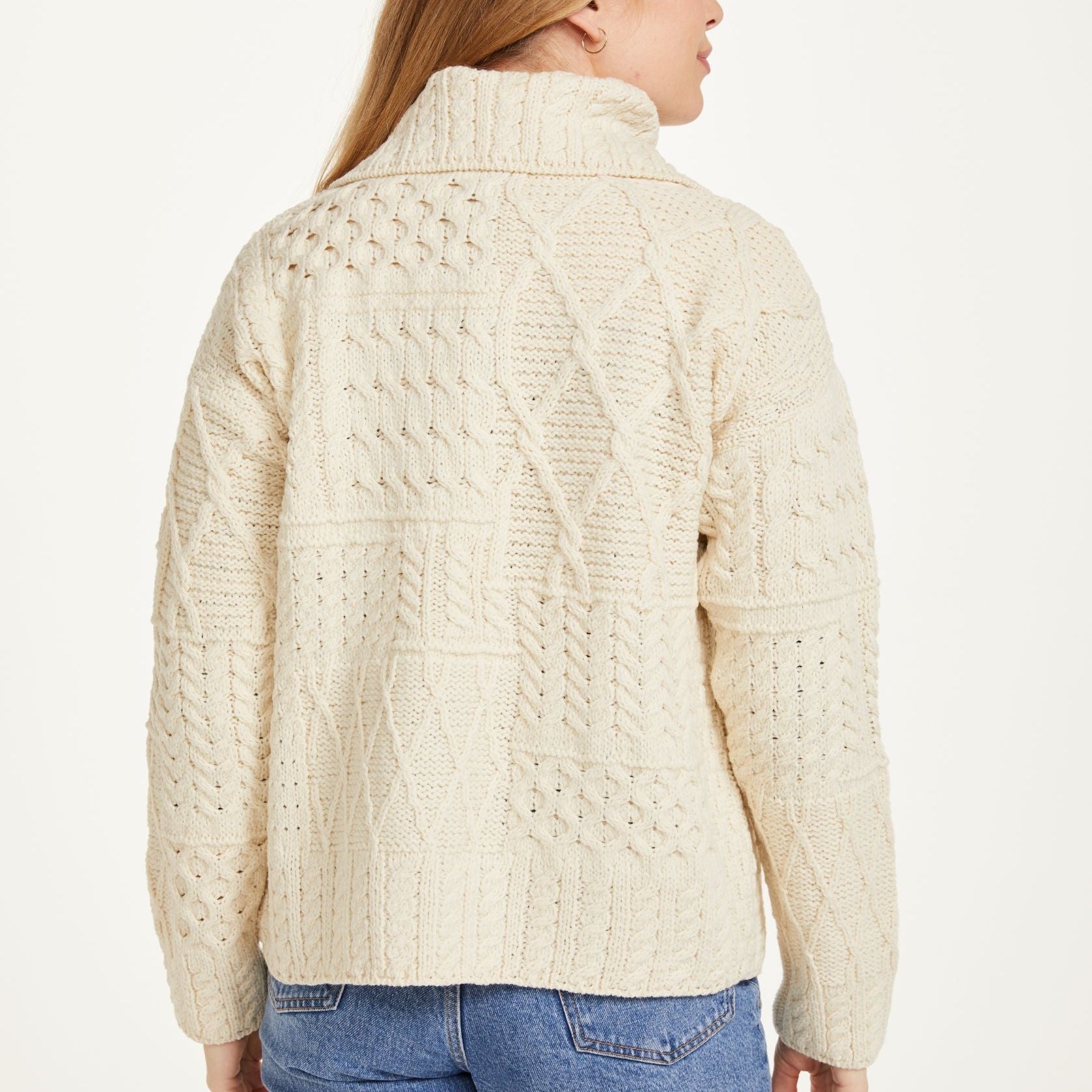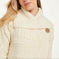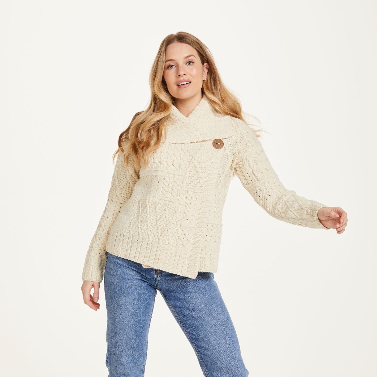 Wrap yourself in elegance with the Ceide Ladies Aran Cardigan. Crafted with meticulous attention to detail, this cardigan combines classic Aran stitching with contemporary style for a truly timeless piece.