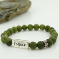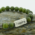 Experience boundless joy with our Connemara Marble watermelon stretch bracelet. Infused with positive energy, this vibrant green gemstone evokes happiness. Its smooth texture ensures comfort throughout the day, while the word "Inspire" engraved on it serves as a constant reminder to cherish life's little moments. Elevate your style and spirit with this delightful accessory that radiates pure joy.
