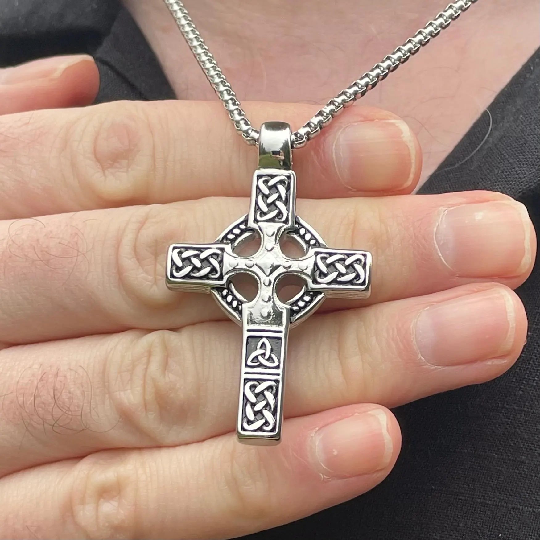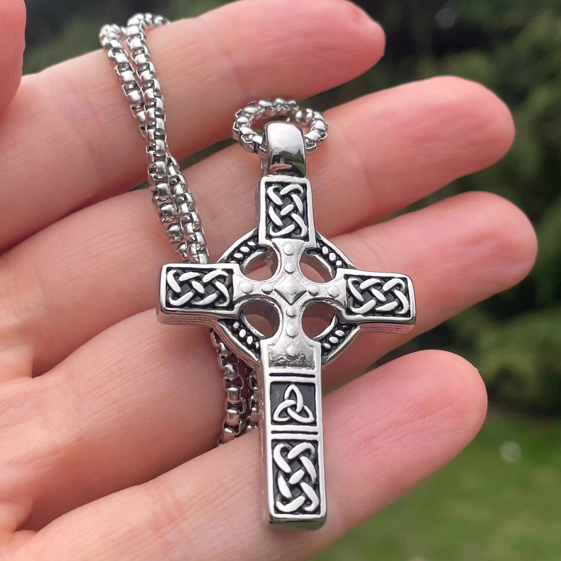 Stunning, heavy, solid, tough! stainless steel Celtic cross necklace for men ๐ช