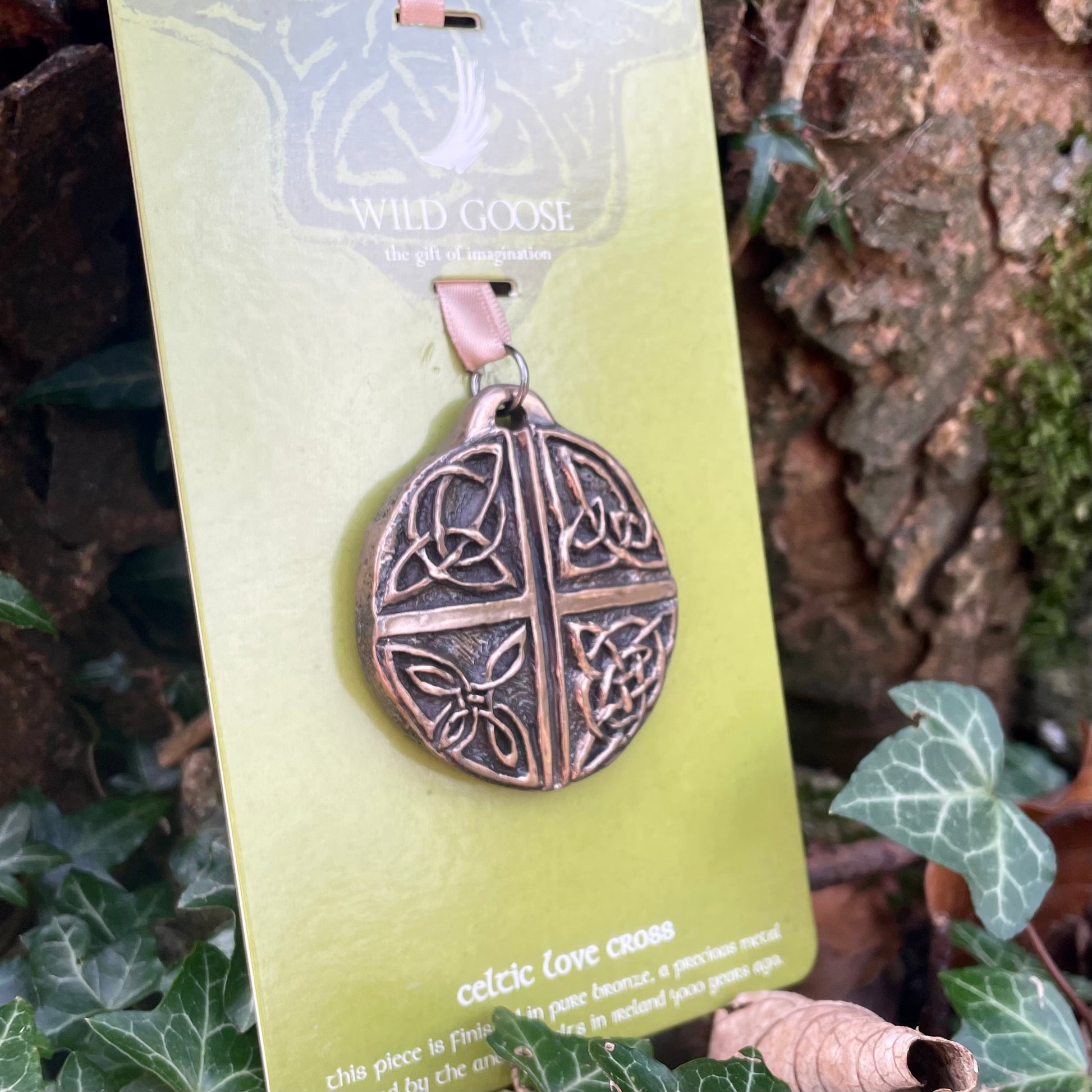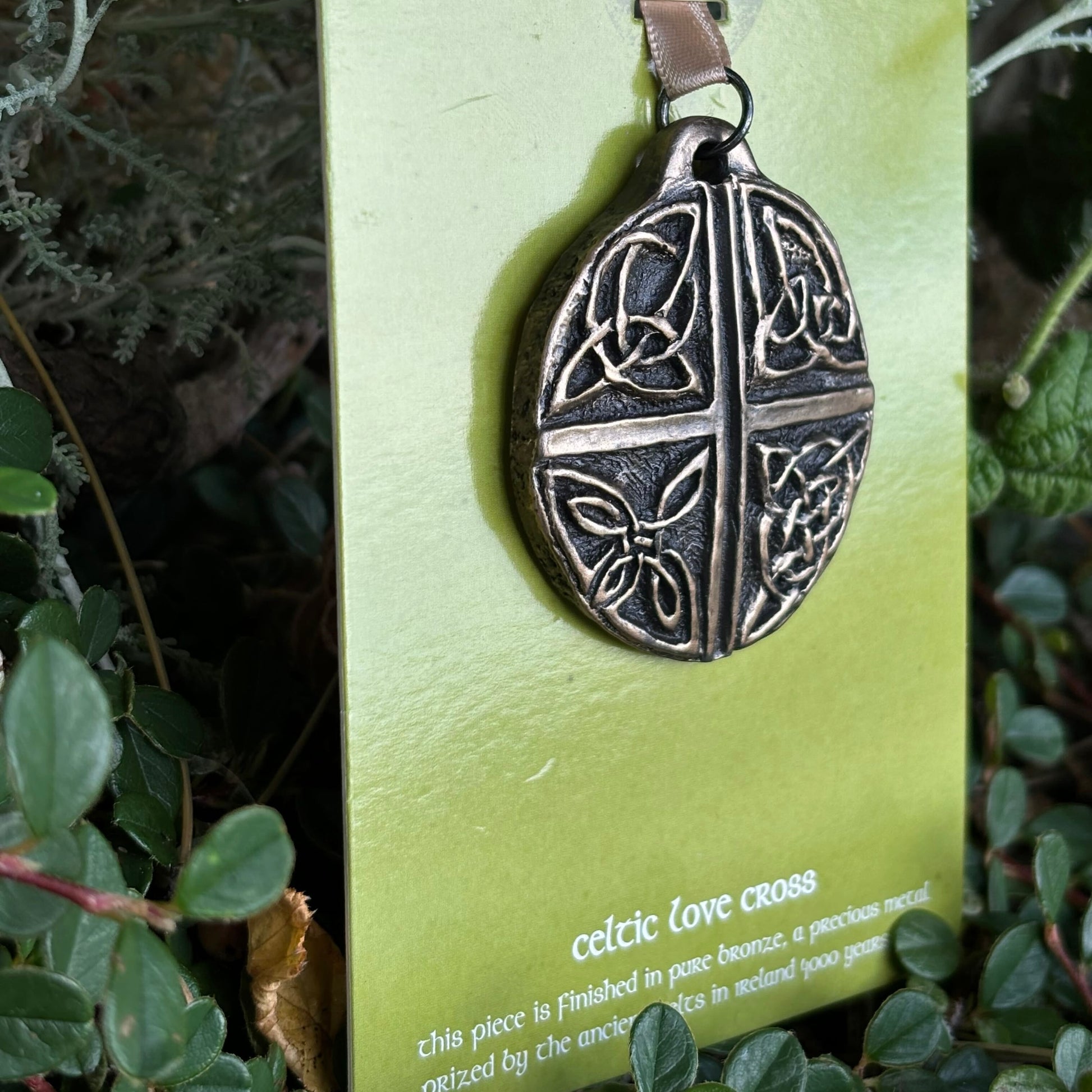 This Celtic love cross ornament has a pure bronze finish and cold cast ceramic resin core.