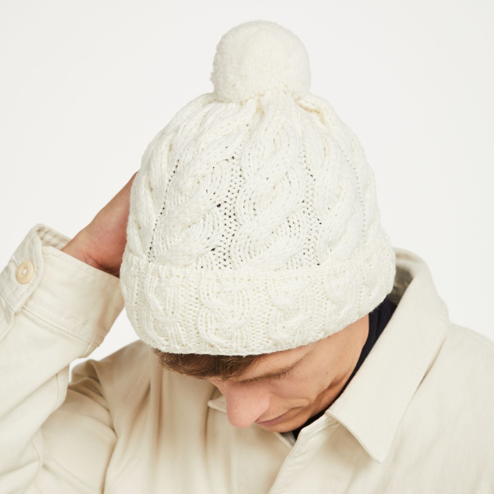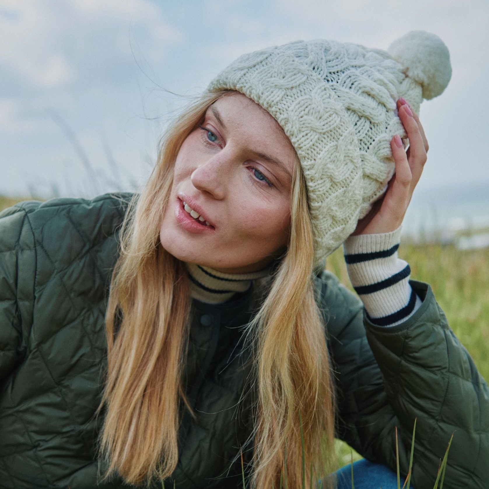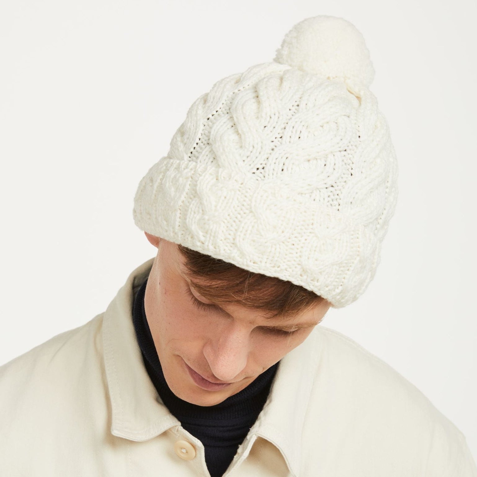 Elevate your winter style with the Clifden Cable Aran Hat with Pom Poms and embrace the perfect blend of tradition and fashion-forward design.