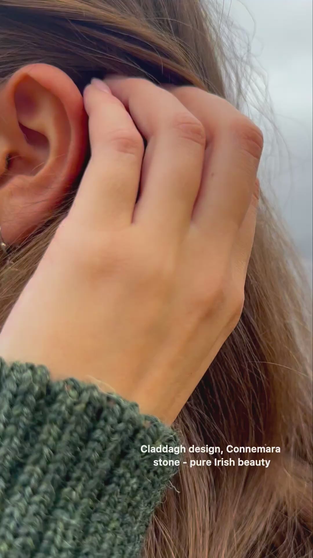 Treat someone special (or yourself!) with these beautiful sterling silver Claddagh earrings crafted in iconic Connemara marble, a unique stone that dates back over 900 million years and is known as “Ireland’s gemstone”. All of our Connemara is authentic, hailing from the Joyce family mine in Connemara. The Claddagh’s symbols represent love (heart), friendship (hands), and loyalty (crown). These marble drop earrings have been Irish hallmarked in Dublin Castle.