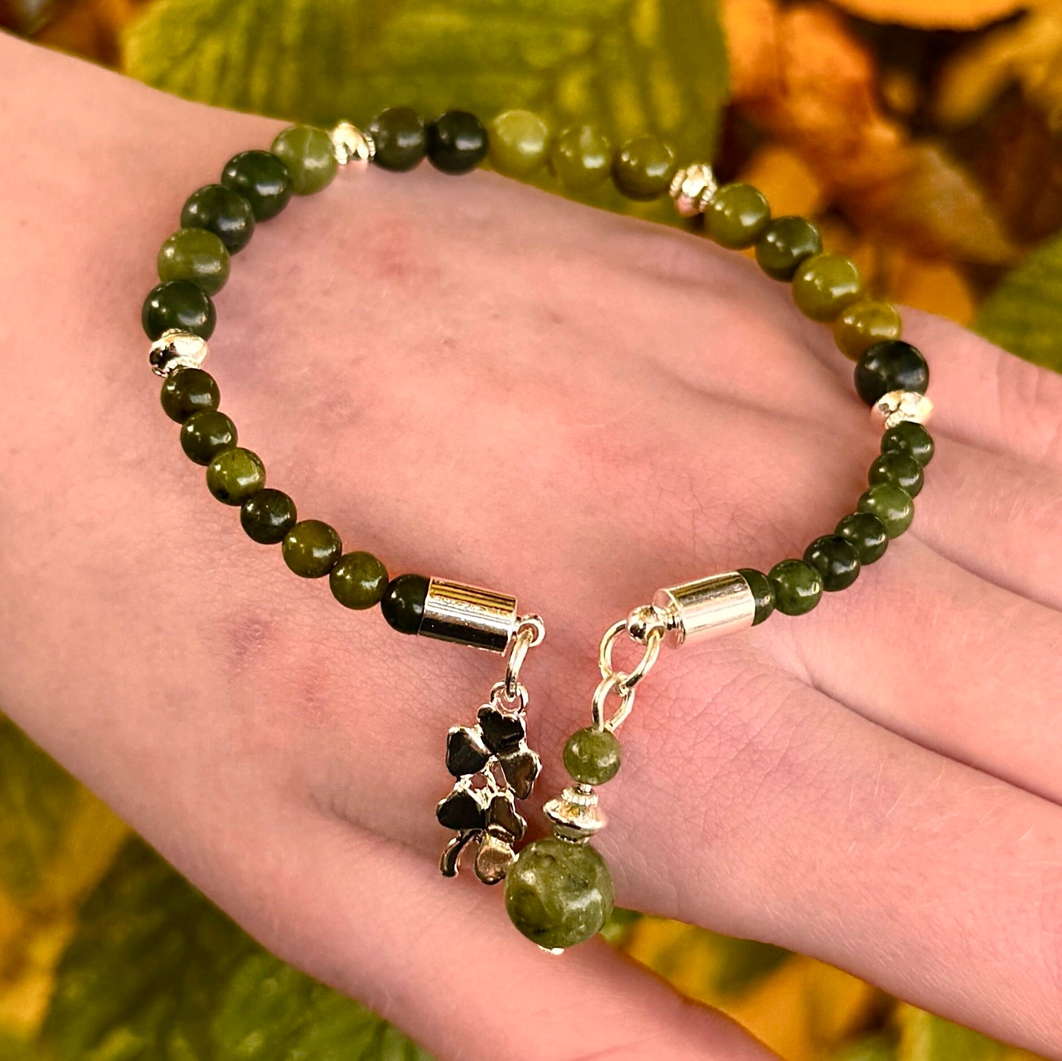 Irish jewelry at its finest! Our Connemara Marble Claddagh Horseshoe Style Bracelet is the perfect Irish gift. It is one size fits all, with a beautiful Connemara marble bracelet, and an Irish horseshoe-style Claddagh charm. Perfect for yourself or for a loved one, this charm bracelet is sure to be a staple in your Irish jewelry collection!