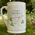 Another phrase we Irish use is the Kiss me I'm Irish phrase which also comes as a Belleek mug. Or how about our Aran Stitch Mug without the writing?