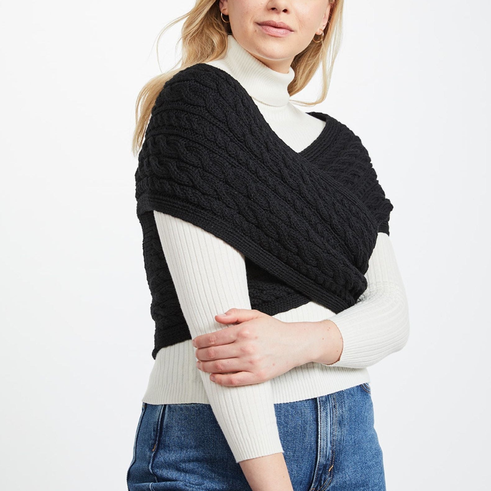 Perfect Gift: Whether treating yourself or someone special, the Corrib Black Crossover Aran Wrap is a thoughtful and stylish gift for any occasion.