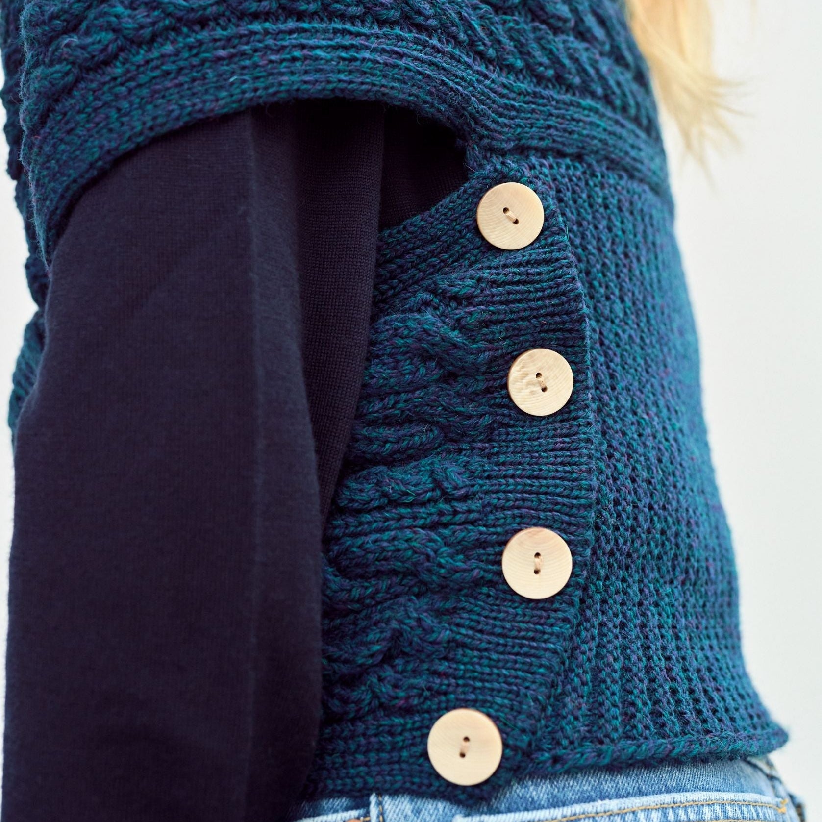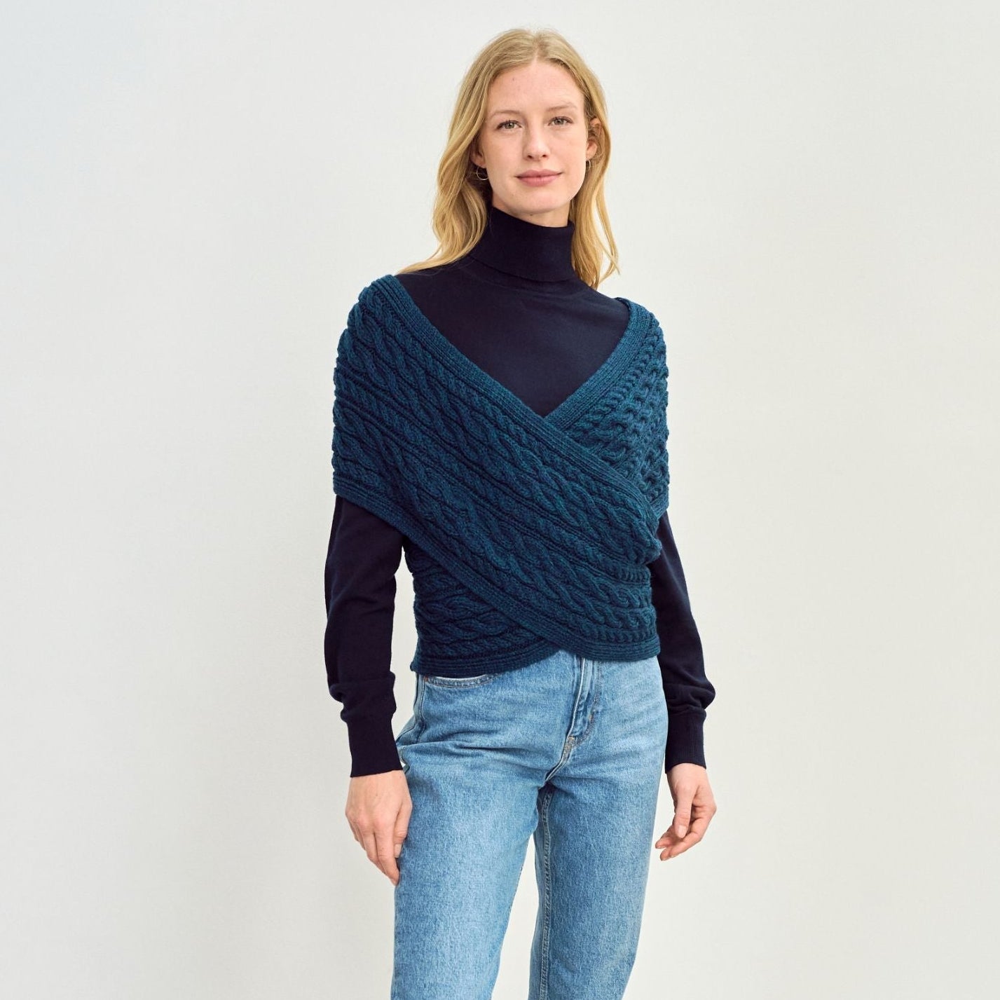 Intricate Aran Stitching: The wrap features classic Aran cable and diamond stitching, adding texture and depth to the design while paying homage to Ireland's rich knitting heritage.
